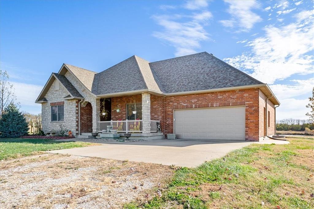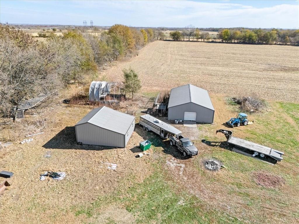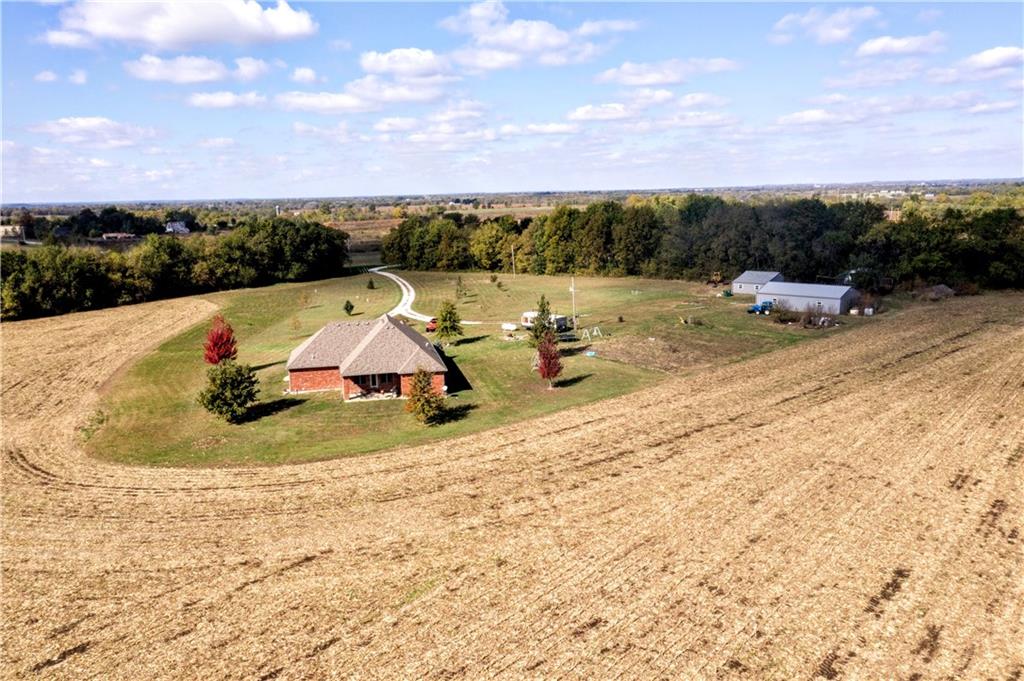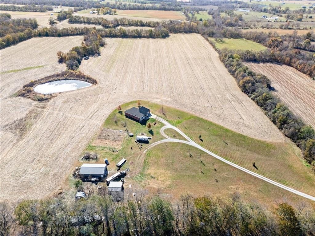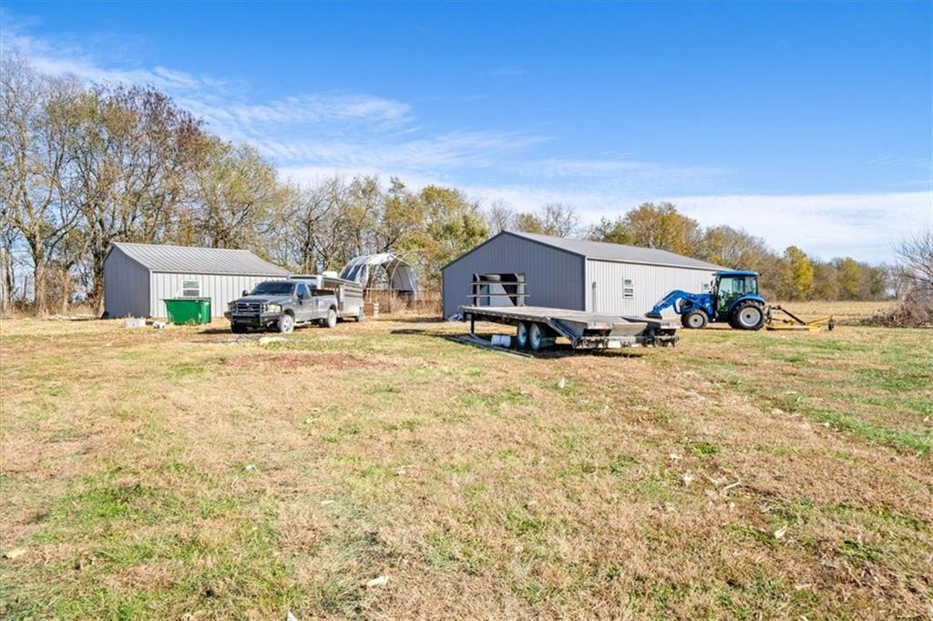 Your own private sanctuary on 20 Acres M/L—just off blacktop, surrounded by nature and peaceful privacy. The only neighbors you’ll see are deer, turkey, squirrels, and an abundance of wildlife. This thoughtfully designed open floor plan showcases excellent construction throughout, featuring a chef’s kitchen with top-of-the-line cabinetry, a massive center island, and generous workspace. Three bedrooms total, including a flexible room ideal for an office, hobby space, or guest suite. Enjoy true main-level living with wide, handicap-accessible doorways and comfort in every detail. 50x 30 and 25x26 Outbuildings ready for storage, hobby or raising livestock. Farm life, Refined. Need more land? An additional 30 acres are available (for a total of 50 acres) for an increased purchase price.