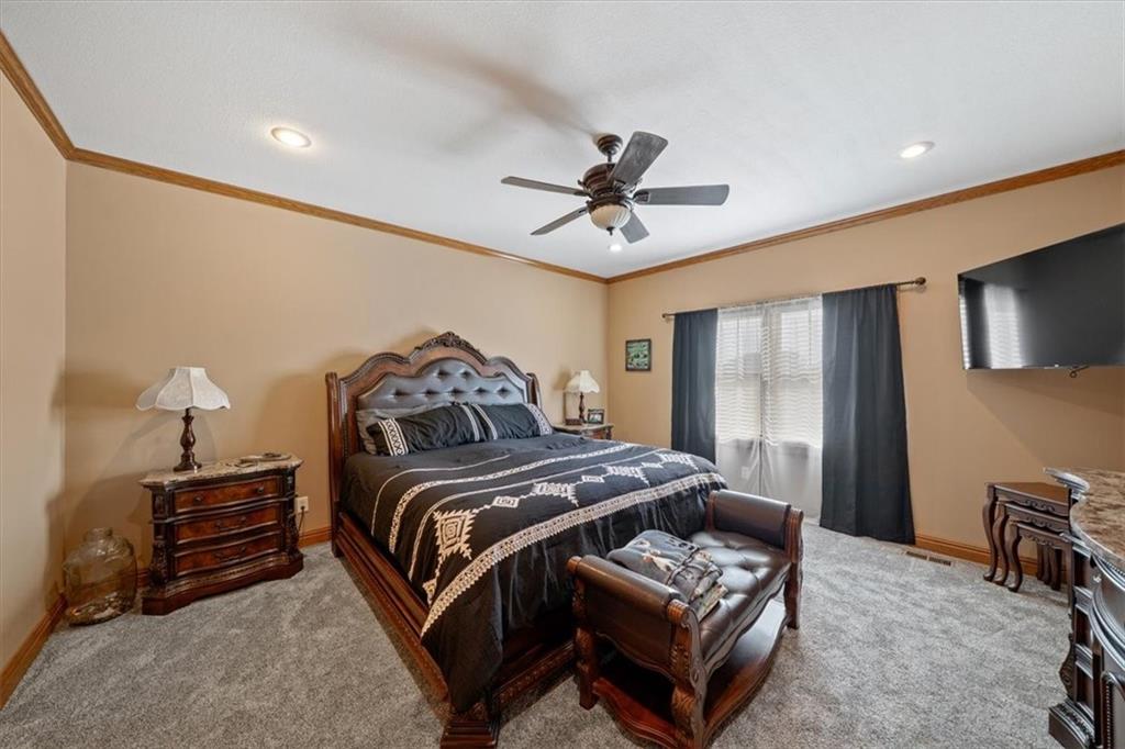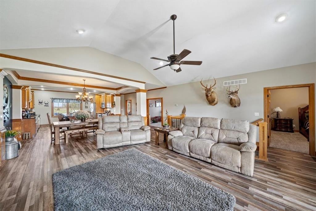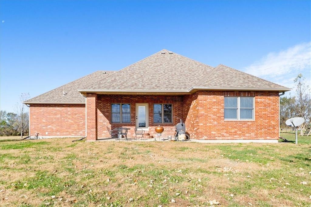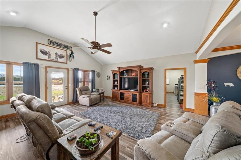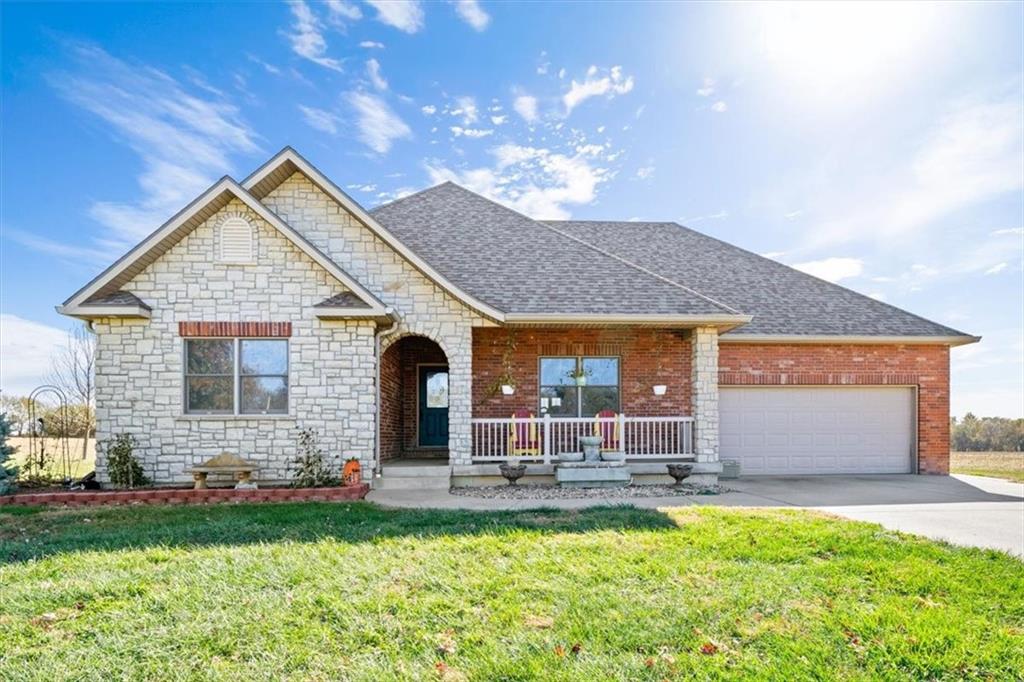 Your own private sanctuary on 20 Acres M/L—just off blacktop, surrounded by nature and peaceful privacy. The only neighbors you’ll see are deer, turkey, squirrels, and an abundance of wildlife. This thoughtfully designed open floor plan showcases excellent construction throughout, featuring a chef’s kitchen with top-of-the-line cabinetry, a massive center island, and generous workspace. Three bedrooms total, including a flexible room ideal for an office, hobby space, or guest suite. Enjoy true main-level living with wide, handicap-accessible doorways and comfort in every detail. 50x 30 and 25x26 Outbuildings ready for storage, hobby or raising livestock. Farm life, Refined. Need more land? An additional 30 acres are available (for a total of 50 acres) for an increased purchase price.