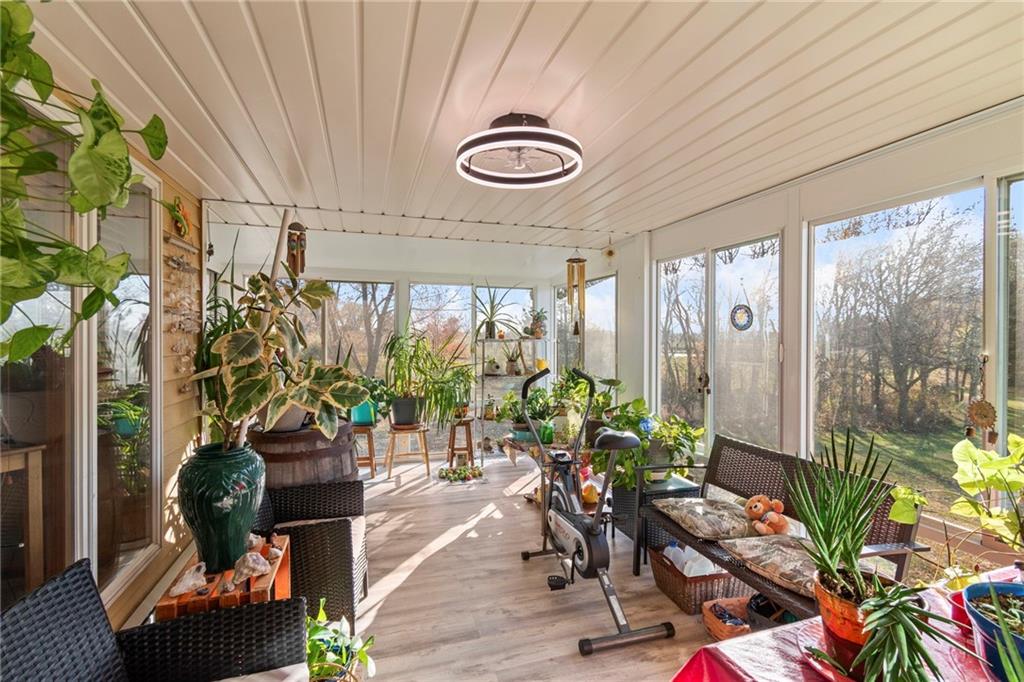 BACK ON MARKET NO FAULT OF SELLER. Cancelled before inspection. Experience country living at its finest on 8.4 beautifully landscaped acres right on blacktop roads, where tranquility meets contemporary upgrades in this inviting Odessa retreat. Step inside to find a spacious three-bedroom, two-bath ranch layout designed for everyday comfort. You’re greeted by a warm, inviting kitchen made for holiday gatherings. With its open layout, large island, bar seating, and custom pantry shelves, there’s space to cook, connect, and keep family close. The kitchen flows seamlessly into the living room with its beautiful brick wood-burning fireplace—perfect for entertaining. Need extra seating? Move from the kitchen bar to the adjoining dining room. This open-concept design ensures you’re always part of the fun. Off the living area, the master bedroom features a private porch to enjoy evening sunsets, while the updated master bath boasts a stunning custom shower with dual shower heads, his-and-her sinks, and separate closets. Too hot or cold for the porch? Relax in the sunroom and soak in serene views of manicured grounds with apple and pear trees. Just off the sunroom, a large newer deck offers plenty of space for family. Evenings are cozy by the fireplace, and modern updates—new can lights, generator hookup, surge protector, 4 year old roof, and new furnace blower motor—add both efficiency and peace of mind. This all-electric home stays energy efficient year-round. A deep two-car garage and huge unfinished basement with elevated ceilings offer abundant storage or expansion potential. Outside, a 42x50 barn with concrete floors, covered awning, and its own electric panel. If that’s not enough, a three-sided pole barn adds even more storage. This property blends country charm with modern comfort— with a perfect blend of pasture and wood. This is an exceptional choice for hobby farmers, outdoor enthusiasts, or anyone seeking a peaceful, versatile retreat close to town and highways.