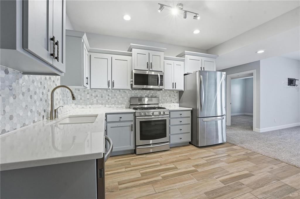 This Roeland Park home delivers standout style and comfort from the moment you arrive. Just seven years young, it offers a crisp, modern feel with warm hardwoods and an inviting layout that fits everyday living and easy entertaining. The kitchen takes center stage with quartz counters, a gas range, a spacious island, a walk-in pantry, and a dining area that opens to the living room and deck for smooth indoor and outdoor flow. A convenient drop zone sits off the garage, and the backyard features a relaxing patio and storage shed. Upstairs, the primary suite feels like a private escape with an oversized walk-in closet, double vanities, and a sleek walk-in shower. All secondary bedrooms include walk-in closets, and the laundry room is perfectly placed on the bedroom level. The fully finished walk-out basement adds a rare level of versatility with a full second kitchen complete with quartz counters and a gas range, plus a bedroom, full bath, living area, laundry, and access to the patio. It creates an ideal setup for extended stays or a dedicated hangout space. With thoughtful design, quality finishes, and flexible living areas throughout, this home brings comfort and function together beautifully in a prime Roeland Park spot.