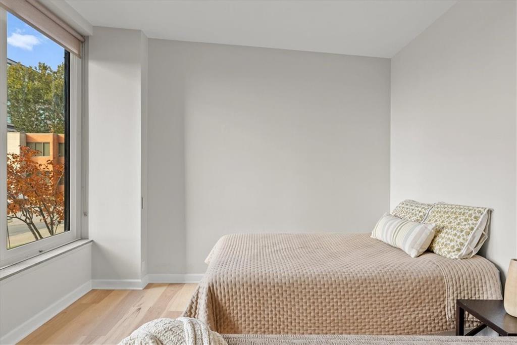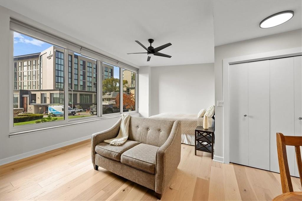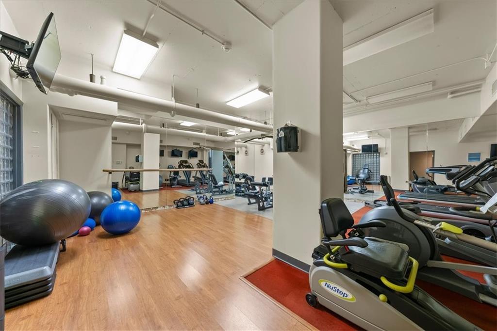 Welcome to an exquisite studio residence nestled in the heart of the Country Club Plaza, a gem that epitomizes elegance and tranquility. Unit LE3 at 4545 Wornall Road invites you to experience a blend of modern sophistication and classic charm in Kansas City, MO. This thoughtfully upgraded home features new hardwood flooring, professionally painted cabinets, and sleek quartz countertops, complemented by newer appliances for a seamless living experience. As you enter, you are greeted by an almost floor-to-ceiling wall of windows, granting you the perfect vantage point to admire the iconic Plaza holiday lights. Or close the custom blinds for your personal evening escape! The building boasts an array of luxurious amenities, including a 24/7 doorman for your peace of mind. The HOA covers water, heating, and cooling, allowing you to enjoy hassle-free living. For fitness enthusiasts, the gym is an ideal spot to maintain your wellness routine, and the beautifully renovated communal areas provide the perfect setting for hosting unforgettable gatherings. Step out onto the great deck overlooking Mill Park, where you can savor the art of grilling amidst lush green views. Across the street you will find the new upscale Cascade Hotel, with Messenger coffee, Sojurn spa, and a food hall concept called Plaza Provisions with several great local restaurants. This contemporary place truly has it all, offering peace in the heart of the city with amenities designed to enrich your lifestyle. Embrace the opportunity to make this space your own.