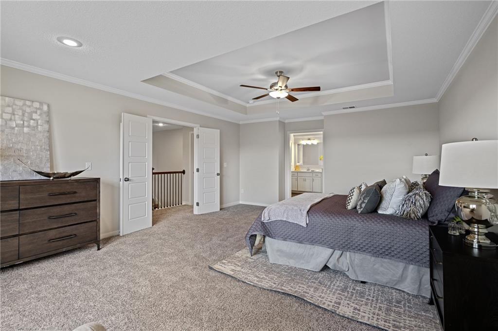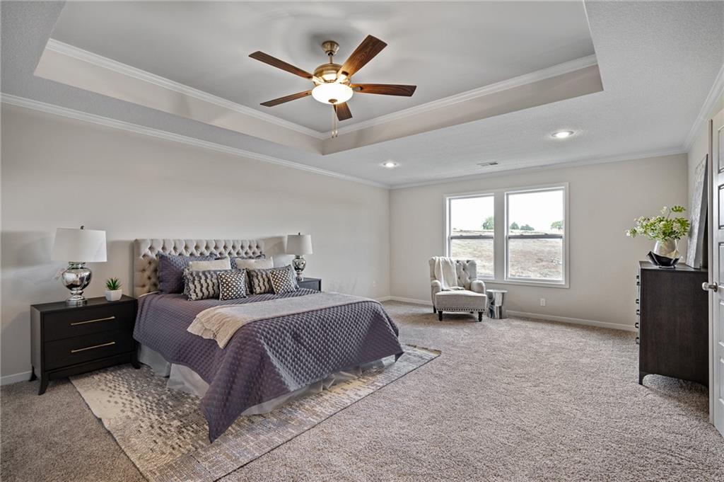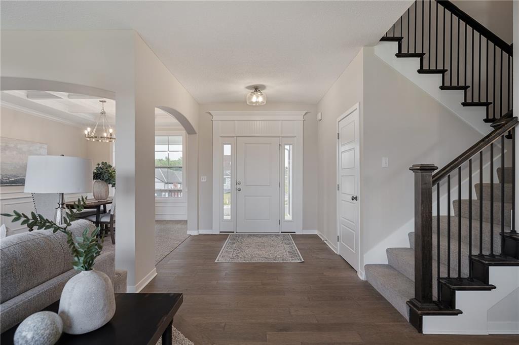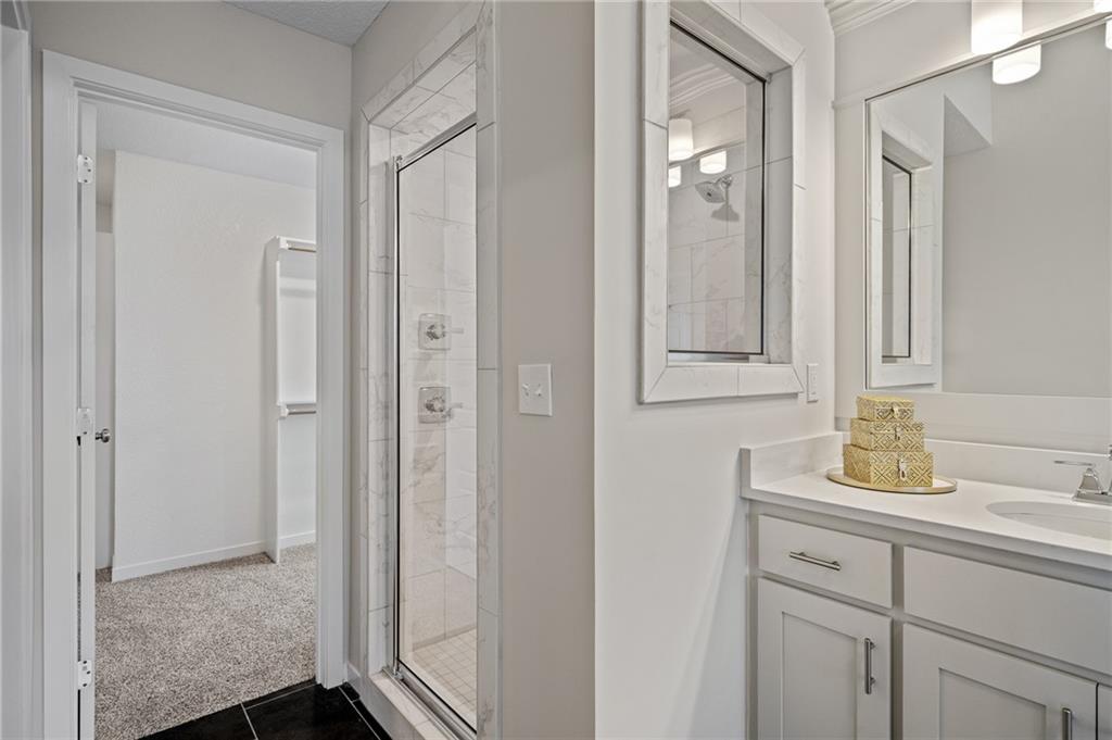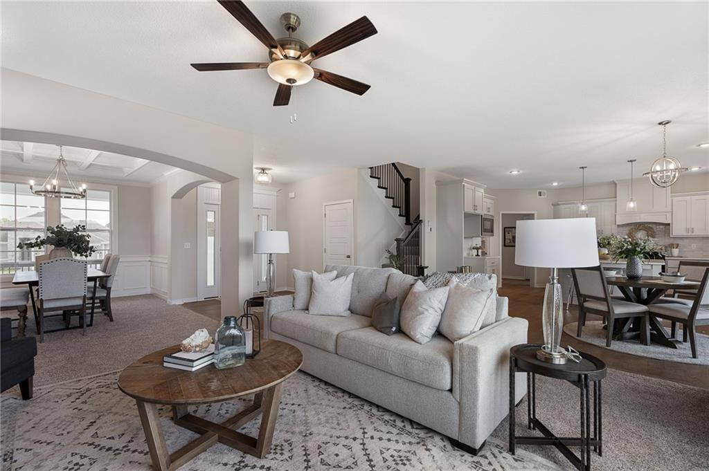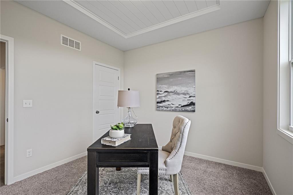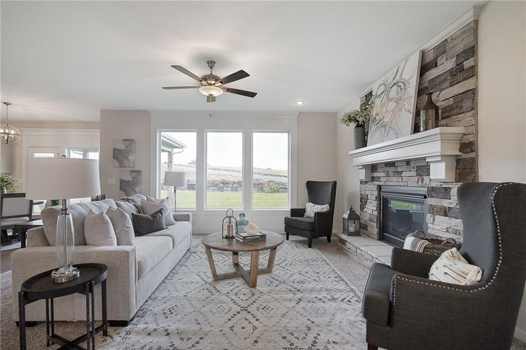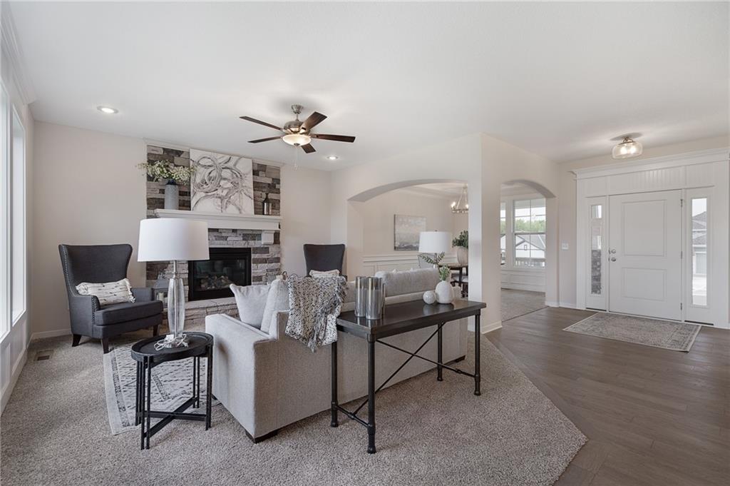 Levi II - Front Porch. This home is one of Prieb's most popular floor plans and features a large island in the kitchen and painted cabinets. There is a flex room on the main floor off the kitchen perfect for a home office with a full bathroom located close by. A stone fireplace in the great room and open floor plan are favorite features of this home. The primary bedroom has a huge primary bathroom with double vanities and granite countertops, separate shower and tub, and large walk-in closet. The laundry room is conveniently located next to the primary closet. The 3 secondary bedrooms upstairs are all spacious and have direct access to a bathroom. Home could close in 45 days or less.