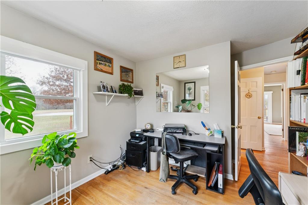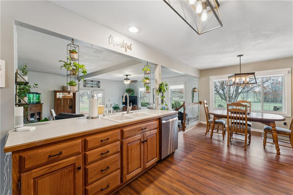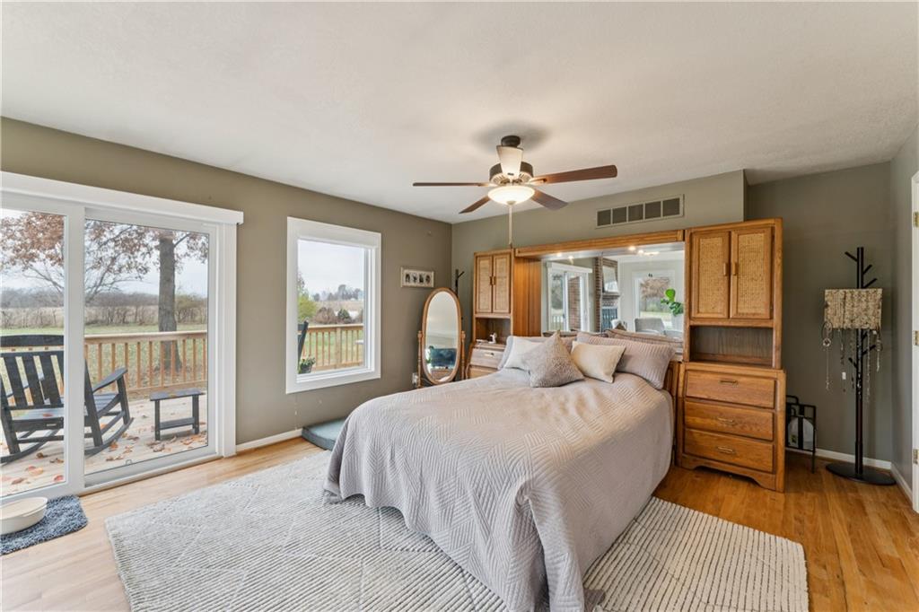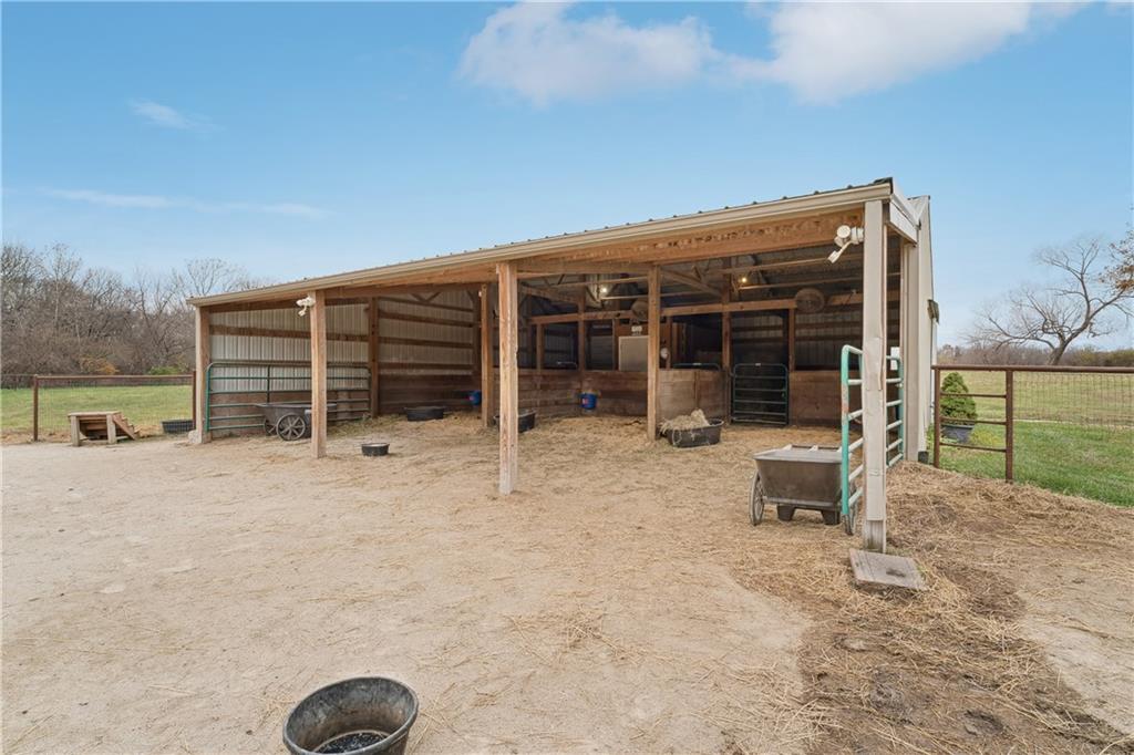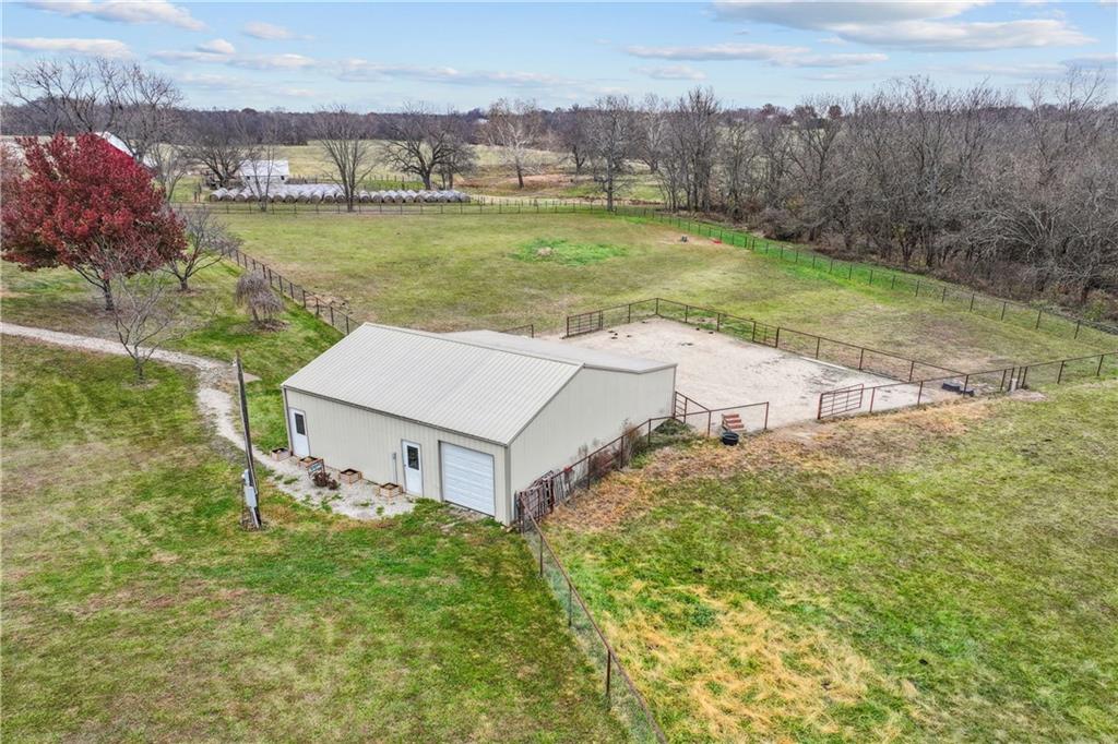 Just minutes from Overland Park and Louisburg, this 20-acre retreat offers unmatched privacy, incredible views, and a perfect blend of woods, pasture, and water. With ten acres of mature timber, ten acres of open pasture, a stocked, manicured pond, and Poney Creek running the full length of the property, it is the ideal blend of beauty and function. Horse ready and fully set up, the property includes horse safe fencing, cross fencing, a heated automatic waterer, three stalls with an attached run-in shed, a tack and storage room, plus water and electric in the barn. The home offers more than 3,100 square feet of comfortable, thoughtfully designed living space. Large windows and a brand-new deck capture sweeping views and daily wildlife. Inside, the great room is perfect for gatherings, and the kitchen is built for entertaining. Key updates give serious peace of mind. The home features 20 new thermal windows, a new sliding door, new gutters with guards, new composite siding with a 50-year transferable warranty, a one-year-old HVAC system, a one-year-old water heater, and a 5-year-old, 30-year roof. Follow the long private driveway to a property that feels secluded, peaceful, and truly special. This is a rare opportunity to live the outdoor lifestyle you want while staying close to the conveniences you need.