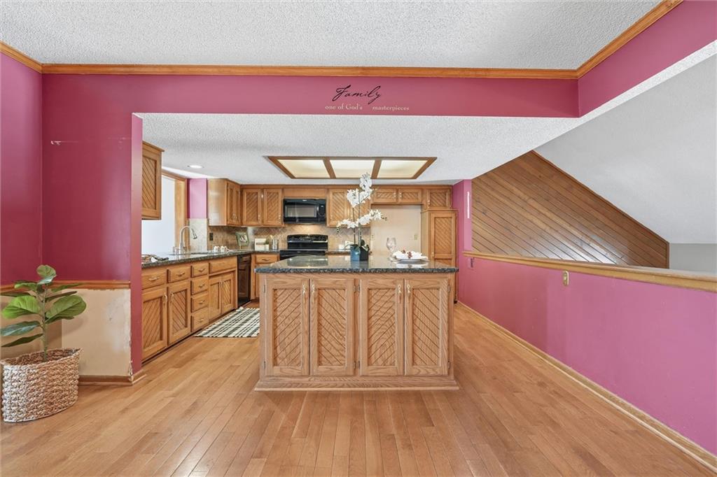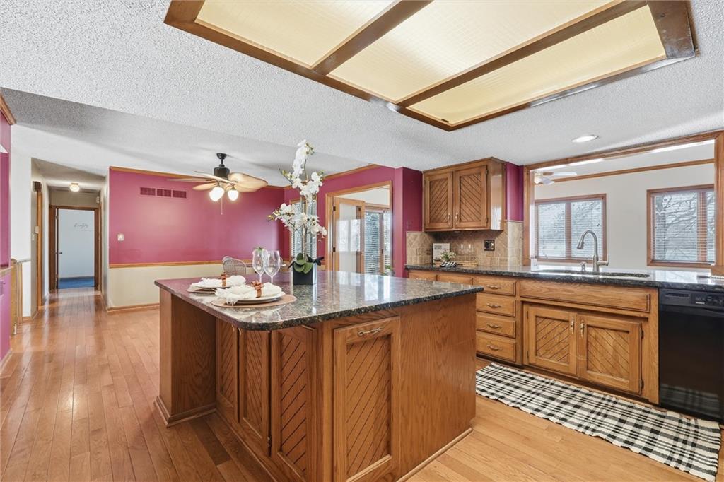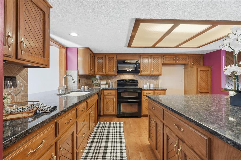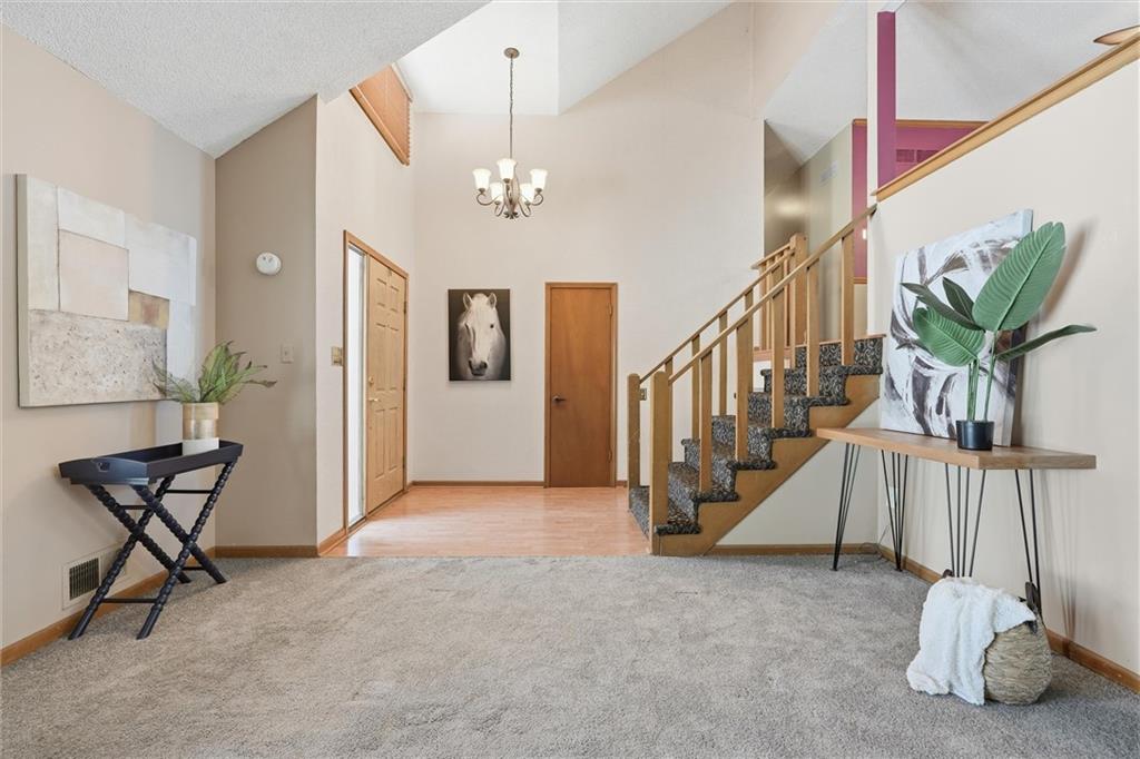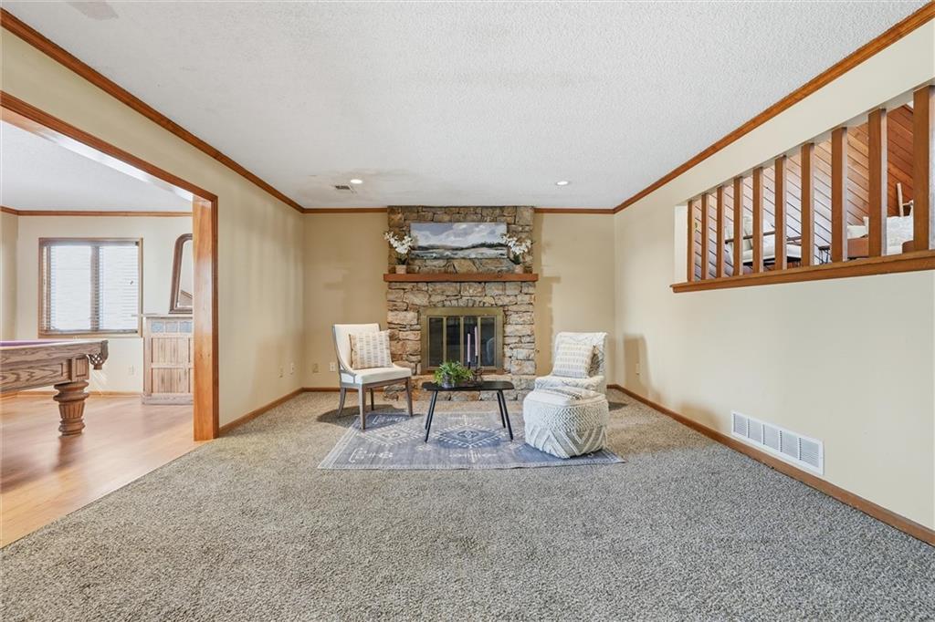 Welcome to this well-cared-for two-owner home in the sought-after White Ridge Farm neighborhood in Lees Summit! You're just minutes from stores and restaurants, a short drive to the charm and energy of historic Downtown Lee’s Summit and have quick highway access for easy commuting. Even better, you’re only two blocks from the extremely popular Rock Island Trail, perfect for walking, running, and biking! Inside, this home gives you lots of extras you won’t find in similar floor plans. Upstairs, you’ll love the bonus room off the kitchen—featuring beautiful hardwood floors perfect for an office space or den. Downstairs, the family room and extended rec room offers the perfect second living area, playroom, or hangout space. The kitchen features granite countertops, an extra large island perfect for serving a large gathering or storing all your essentials. Enjoy vaulted ceilings in the family room and primary bedroom, a cozy stone fireplace in the lower level, and a deep garage with space for storage or hobbies. Heating and cooling systems are only 4 years old and the home sits on a solid foundation–so all that’s left is for you to bring your own cosmetic updates to make it truly yours!
