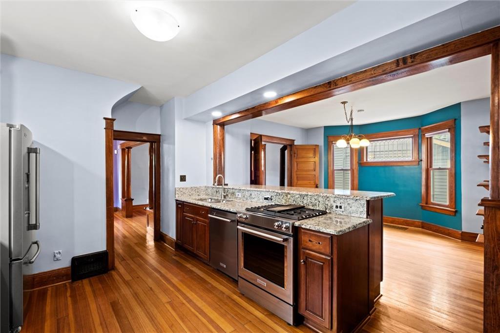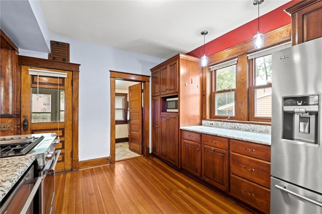 Imagine coming home to a place that feels warm, soulful, and full of stories. This 1910 Four-Square Victorian has the kind of charm you just don’t find in new construction—and it welcomes you in from the moment you step onto the front porch. Sunlight pours through four beautiful stained-glass windows, casting soft color across the hardwood floors and highlighting the original woodwork that’s been lovingly preserved over the years. The living space feels cozy and grounded, anchored by a wood-burning stove that makes winter evenings especially inviting. The kitchen has been thoughtfully remodeled to bring the home into modern life without losing its character. It’s open and easy to gather in, with granite countertops, stainless steel appliances, and plenty of room to cook, connect, and linger. A marble-accented half bath adds a quiet touch of elegance. Upstairs, the expansive third-floor room is a wonderful bonus—perfect for a dreamy bedroom, creative studio, home office, or playroom. Outside, the home truly shines. Sip your morning coffee on the screened-in back porch, or wind down at the end of the day on the classic covered front porch, watching the neighborhood go by. This is more than a house—it’s a place where history, comfort, and everyday moments come together beautifully.
