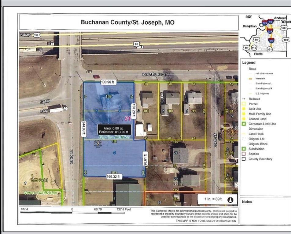 Commercial Development Opportunity for an excellent, high-traffic corner lot sitting right at 36 Hwy & 22nd Street with high visibility from 36 Hwy. On/off access from 36 Hwy East and West. All utilities are available at the street. This listing is for three lots sold together. No structures are included in this sale. The owner will not sell separately. Listed by Owner/Broker- the seller is a licensed Real Estate Broker in Missouri. The business to the south of this property is a medical mobility company, there is also a new fire station across the street to the West, and a general store half a block to the South off 22nd Street. Prime location for a gas station, or a fast-food restaurant. The owner is open to development discussions.