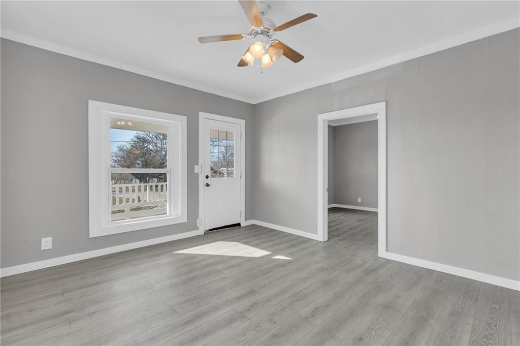 Fantastic, updated 2 bedroom, 1 bathroom Bungalow at a great price!!! New home features in the past year include LVP flooring throughout, freshly painted interior, updated kitchen with new cabinets, appliances and pantry added. Low Maintenance Steel siding on the outside which has been recently painted. Roof was installed within the past year as well. Located within walking distance of the town square. Owner/Agent