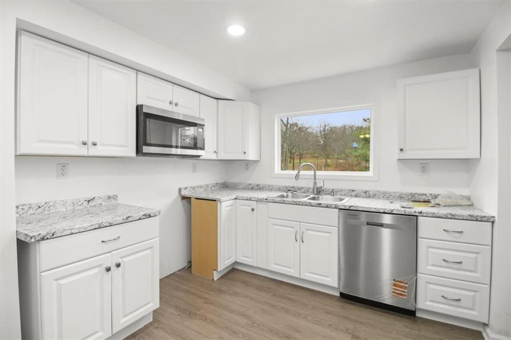 Step inside this freshly updated home and enjoy worry-free living from day one! You’ll love the brand-new siding and windows. New plumbing & electrical are brand new and roof/gutters are 2years old. Inside, everything feels bright and clean with new carpet, fresh paint, and a generous living area that’s perfect for movie nights or game days. The kitchen has been fully updated with new cabinets, counters and stainless-steel microwave and dishwasher, and both bathrooms have been remodeled with modern finishes on vanities and masters tiled shower. Laundry hookups are conveniently located on the main level, and the level yard is a blank slate ready for your fire pit, garden or play space. This one is truly move-in ready—just bring your furniture and make it yours!