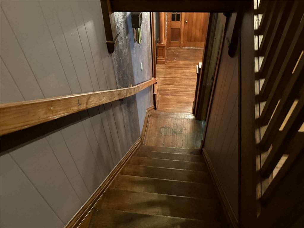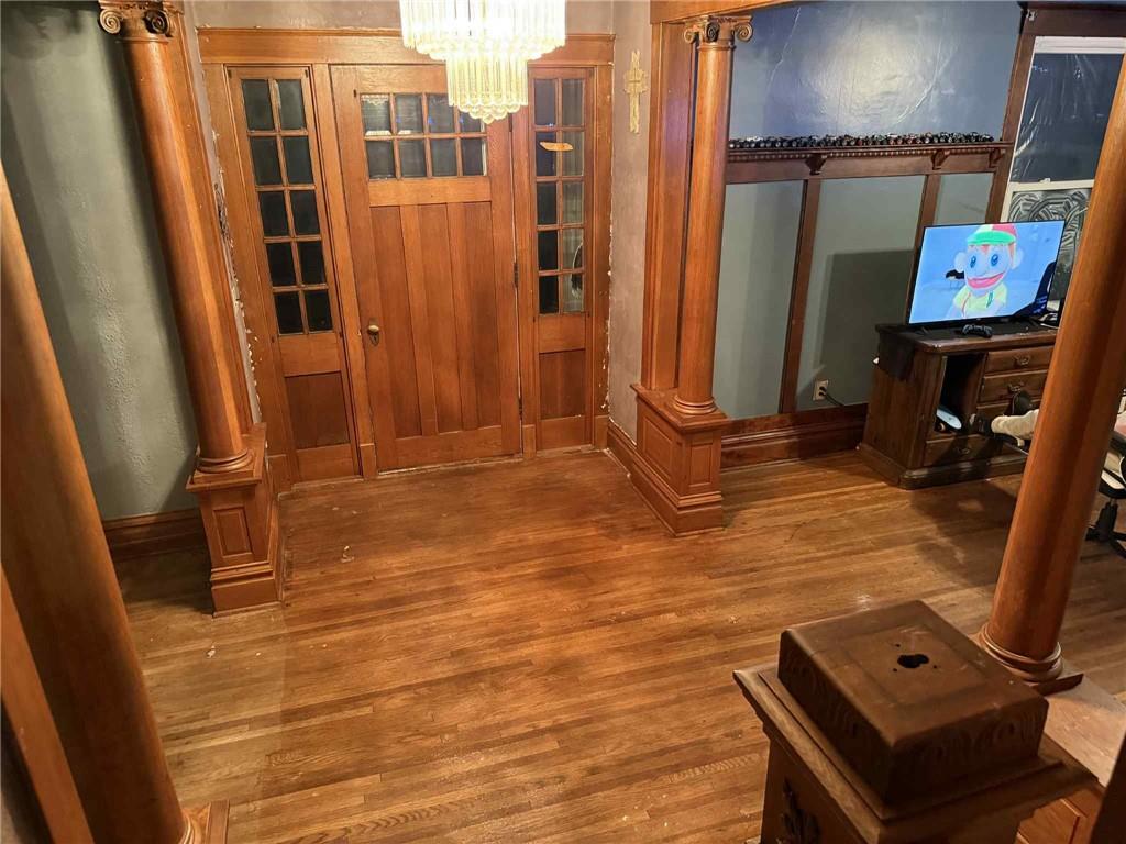 Large 2 story home located on a half a city block in a small town. The home has so much potential: dining room with coffered ceilings, stained leaded glass swinging door to kitchen, plate rail. Large family room with fireplace. Sitting area off kitchen with patio doors out onto deck. Room which was a half bath which Sellers have started will need to be finished how you would like. Large sunroom on main floor, check out all the windows. Upstairs are 3 bedrooms and a full bath and a large landing area with pull downstairs to the attic. Basement is setup for the laundry and a possible full bath and lots of room for storage. The boiler system has had some work done to it and is close to being able to be used. Come enjoy the outdoor space: Large front porch and large back deck. There is a fenced in yard area and 3 car garage. The garage is plumbed so it would be easy to add water. Come fall in love with this fixer upper. Both fireplaces are gas.