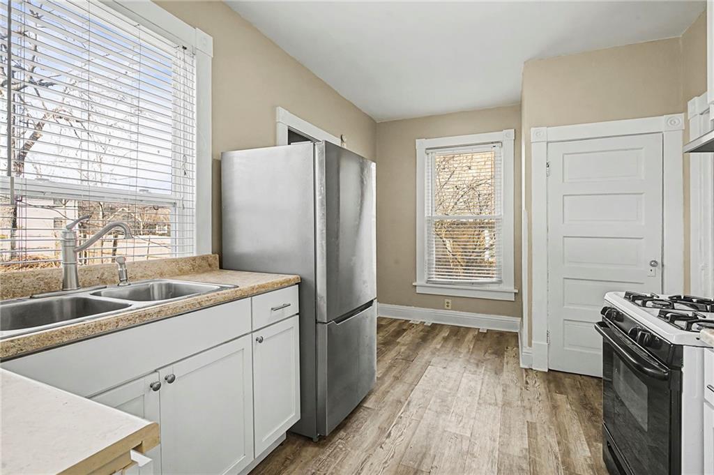 Nice 1.5 story home with 3 bedrooms and 2 full size bathrooms. With the attic opened up and finished this home now boasts over 1600 sq. foot of finished living space. All new floor joists, floor and newer carpet in upstairs. New 35 year roof with new rafters. Fresh foam insulation added to the attic and additional blown in insulation downstairs. Dbl pain energy efficient windows throughout home. Oversized privacy fenced back yard with a storage shed. Centrally located near Old westport and the plaza. This would make a great long/short term rental and or an Airbnb. This is one of the most walkable neighborhoods close to all the fun in the midtown and west plaza areas of Kansas City.
