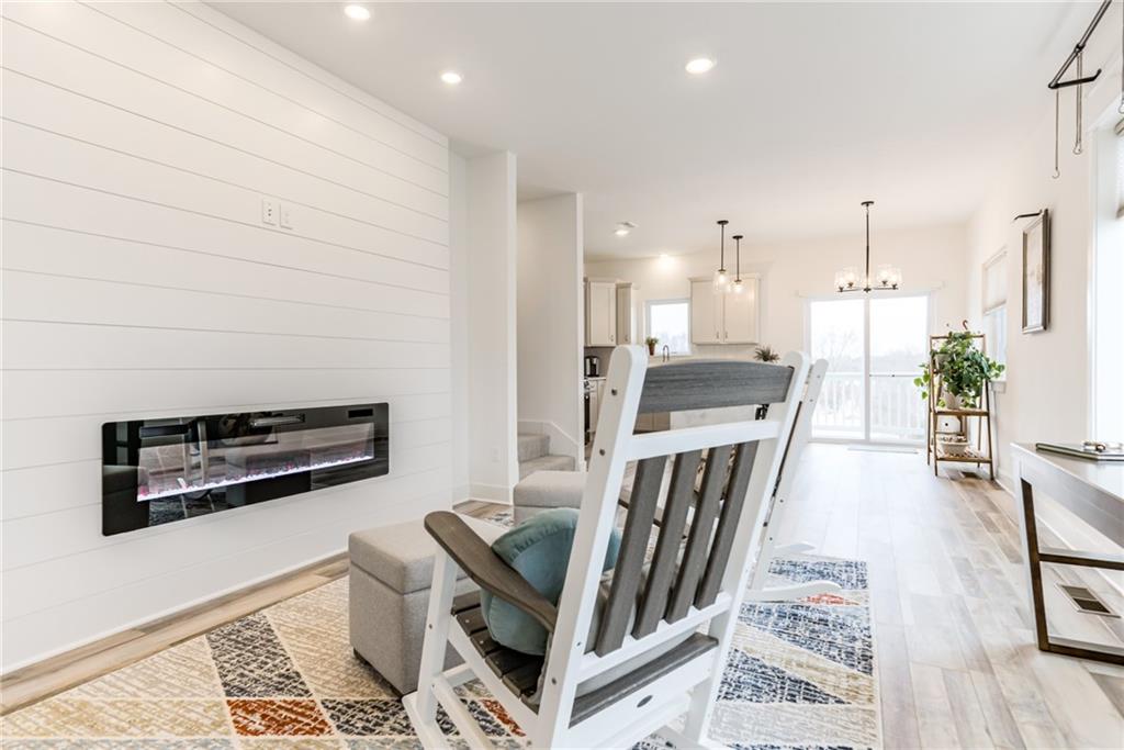 This thoughtfully designed four-bedroom, 3.5-bath townhouse offers a rare combination of quality construction, modern finishes, and a highly functional layout. * Just a year old—and kept in immaculate condition by its single owner—this home feels nearly new, with no pets and numerous upgrades already in place. * The main level features 9-foot ceilings, and an open kitchen appointed with waterfall quartz countertops, custom tile backsplash, soft-close cabinetry throughout the entire home, and smart appliances, all of which stay (including the refrigerator, washer, and dryer). * A sleek electric fireplace anchors the living area with multiple display and heat settings. * Upstairs, you’ll find a convenient laundry closet, plus a nearby dedicated office space. * All bathrooms are finished with quartz countertops and custom tile selections for a clean, timeless look. * The fully finished walkout basement adds valuable living space, while a two-car garage with an extra-deep driveway, 40-amp EV charging outlet, 90% high-efficiency furnace, and 50-gallon water heater support daily comfort and efficiency. * Construction includes two-hour firewalls between units for enhanced safety and sound separation. * Additional upgrades include custom window treatments throughout, with plantation shutters in the bedrooms. * The HOA covers lawn care, trash, recycling, and snow removal, simplifying maintenance. * Immediate possession is available. A well-built, well-maintained home with meaningful upgrades already in place—move-in ready and easy to enjoy from day one! * Easy highway access!