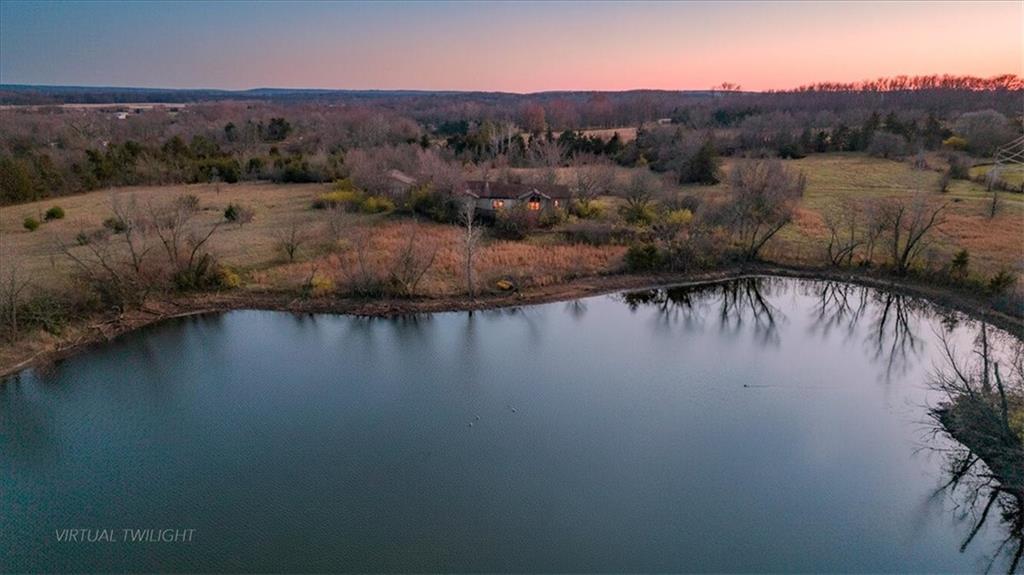 Escape to private, picturesque, and close-in country living with endless possibilities. Tucked away on a beautiful 24 acre setting on paved roads just outside the city limits of Lawrence, KS, this unique property offers a mix of mature woodlands, open pastures, a large pond and plentiful wildlife. At the center of this gorgeous land is a charming stucco, 2 bedroom, 2.5 bath, true ranch home offering 2146 sq. ft of main floor living area, an open floor plan with a large open great room with wood burning fireplace, an open kitchen with stained cabinets, an island with breakfast bar, a pantry, all appliances and a dining room with large radius picture window overlooking the gorgeous views of the pond. Rounding out the main level is a master suite with vaulted ceiling, large walk-in closet with built-ins, a master bath with stacked washer/dryer, jetted tub, walk-in shower, and water closet; an additional guest bedroom, a full bath with tiled shower/tub, and a half bath off the kitchen. The full walk-out basement was originally finished with an additional 1100 sq. ft. of living area including a recreation room, family room, 3rd bedroom, full bath and ample storage areas, but due to a water leak with subsequent mold, the basement has been remediated with floor and wall coverings removed down to the studs, which now await your personal decorative touches. Don't forget the matching stucco outbuilding/workshop/garage which offers a kitchenette, an office, a full bathroom, a mini-split HVAC and 4 overhead garage doors for all your cars, equipment and workshop needs. Whether you’re envisioning a hobby farm, renovating the existing home, building your dream home, a quiet weekend retreat or a place to enjoy hunting, fishing, ATV’s, riding horses and exploring nature, this property awaits your decorative vision to create a lifestyle worth dreaming about. Don't miss this opportunity to Bid Your Price. Bidding Ends: December 30 at 1:00 pm.