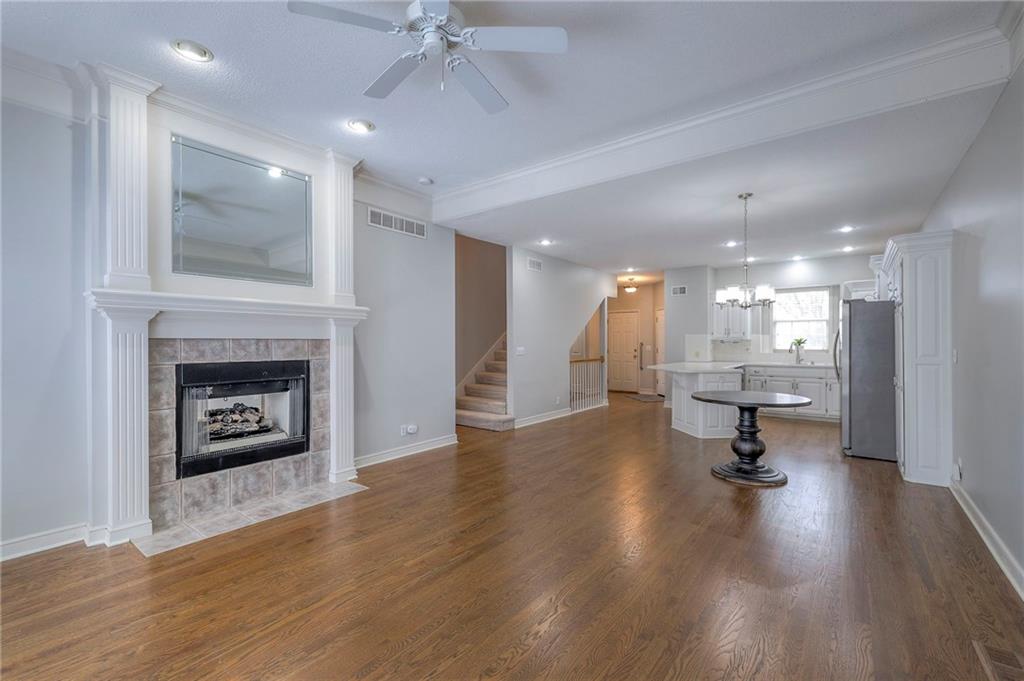 Situated in a quiet cul-de-sac on a private treed lot, this delightful one-owner home provides exceptional main-level living. Beautiful hardwood floors added throughout the main level are a perfect complement to the white kitchen cabinets (w/expansive counter space). With high ceilings, the open area feels spacious yet comfortable, the floor plan is fantastically functional, and the see-through fireplace adds both character and warmth. The large main level bedroom shares the fireplace, and you'll enjoy it's spacious bath with jetted tub and shower. A large 2nd bedroom with private bath and walk-in closet are on the 2nd level, while the finished daylight basement provides additional living area. The floor in the primary bath has been updated, the sliding door has been replaced, appliances are brand new, and cosmetics are neutral. This is a great home in a wonderful maintenance-provided community!