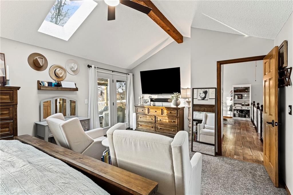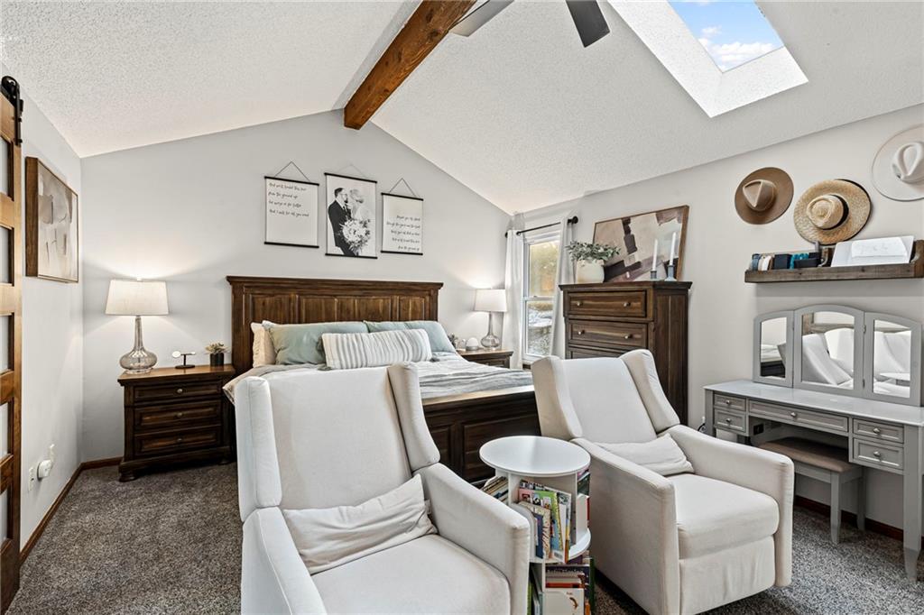 Step into this bright and inviting home where tall vaulted ceilings create an airy, open feel from the moment you enter. The main level offers a warm great room, while the lower-level recreation room features a charming brick fireplace with ceramic logs—perfect for relaxing evenings. The updated kitchen shines with refaced cabinets and soft-close drawers, newer stainless steel appliances, and granite-overlay countertops, and it opens seamlessly to a newer expansive double deck. Built with composite materials and accessible from the kitchen, primary bedroom, and recreation room, this impressive deck includes a covered lower level already wired for a hot tub. The primary suite is a true luxury retreat—also expansive in size and thoughtfully designed with a sitting area, a HUGE walk-in closet, and a spa-like bathroom complete with a large soaking tub. Newer solid-core interior doors, vinyl windows, and oversized bedroom closets add comfort and quality throughout this home. Outside, the fenced yard backs to a peaceful horse farm, offering a tranquil backdrop with mature trees and a handy storage shed. Major updates provide peace of mind, including a 1-year-old composition roof and gutters/downspouts, a newer AC, and recent improvements to the front step, exterior paint, front railing, and garage door. A rare bonus is the large storage space beneath the main level and walk-in closets in every bedroom. Situated on a quiet street within the sought-after Park Hill School District, this home blends comfort, charm, and thoughtful updates in every corner.