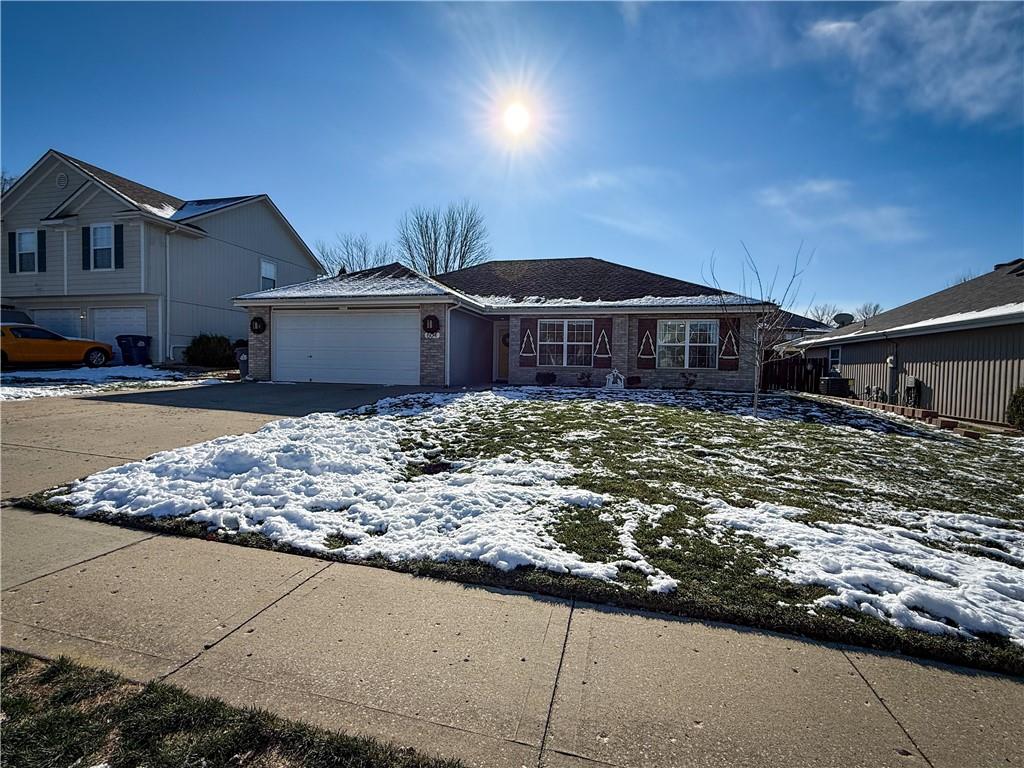 Welcome to this charming ranch home located in the desirable Moorland Village community of Blue Springs, MO. This house has great curb appeal. Built in 2002, this well-maintained residence offers 3 bedrooms, 2 bathrooms, and a spacious 2-car garage. Updated with new carpet throughout the home. Enjoy comfortable one-level living with a bright, open layout perfect for everyday living and entertaining. Conveniently situated near parks, schools, highway access and local amenities, this home is a wonderful opportunity for anyone seeking move-in-ready living in a great neighborhood.