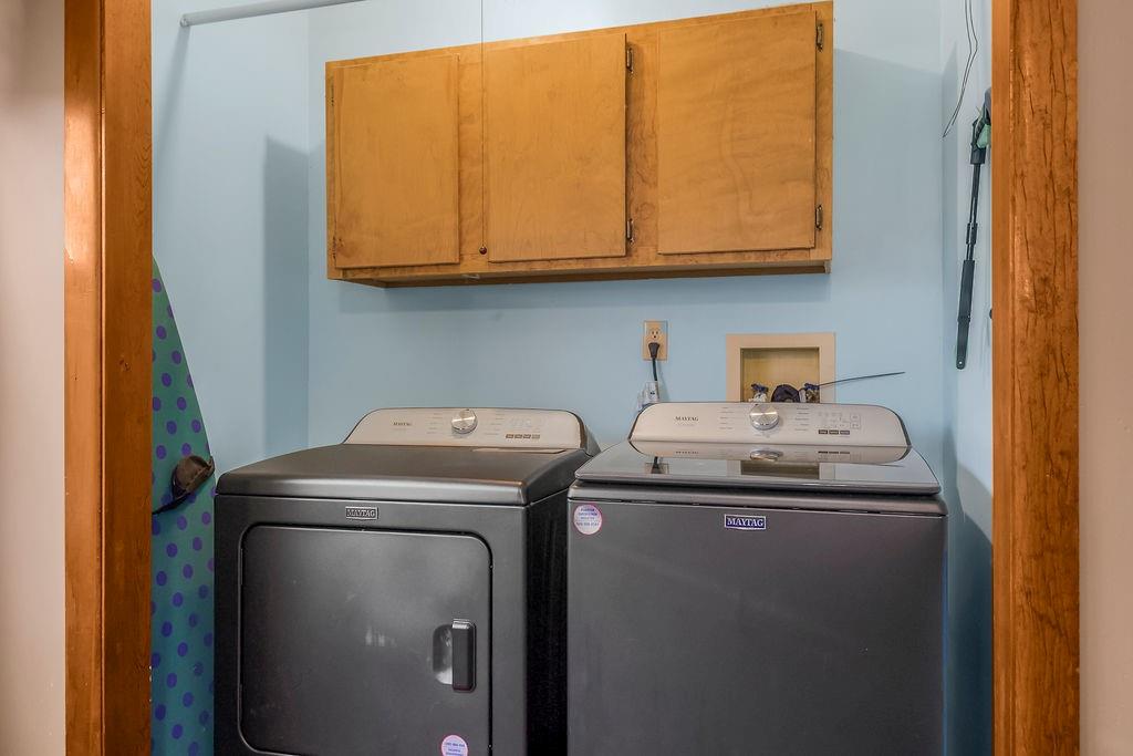 Welcome to this cozy home featuring brand-new appliances, a new furnace, and an upgraded AC unit all completed this year. Inside, you’ll find hardwood floors, vaulted ceilings, and a spacious kitchen with newly added solid-surface countertops, stainless steel appliances, and a deep sink. All three bedrooms are upstairs with carpet throughout, and two offer walk-in closets. The primary bathroom has a shower, while the hall bath includes a shower and tub combo. The basement provides a concrete-floored family and laundry area, plus a sub-basement for extra storage. Step outside to enjoy the expanded covered deck overlooking the fenced yard. The front of the home features a wooden deck with railing and mature trees for added appeal. Conveniently located near major highways, shopping, and restaurants. No HOA!