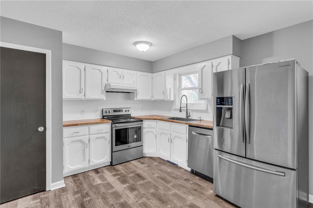 RECENTLY UPDATED home in a quiet neighborhood! New flooring an paint throughout. Updated kitchen with trendy butcher block countertops. All appliances stay! Finished basement can be used as an additional family room or 4th bedroom - with two closets. Beautiful second bathroom downstairs is an added bonus. Fenced backyard and new deck, perfect for grilling and entertaining.