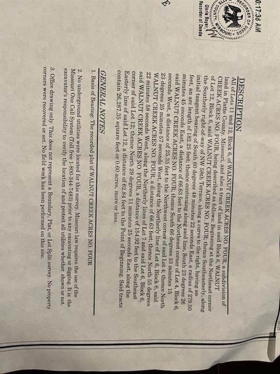 From NW Crooked RD go west onto NW 57th Terrace.. once you get to 58th St the road turns into 58th Terrace, and that is where the property is located. you can GPS this address to find it 10601 NW 58TH TER Parkville, MO 64152