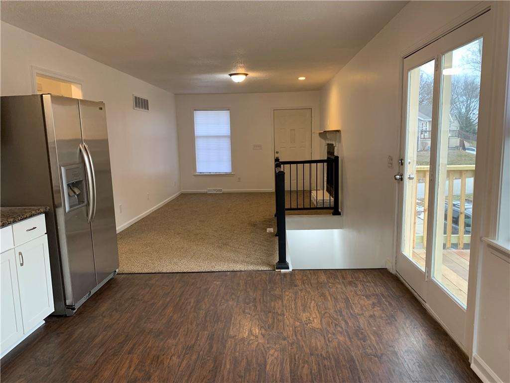 Discover this beautifully updated home in a serene setting, ideal for first-time homebuyers looking to build equity. Enjoy stunning lake views from the property. The home is move-in ready with fresh exterior paint, newly trimmed shrubs and trees, and updated landscaping. A new storm door adds to the curb appeal, while fresh interior paint, new flooring, and updated bathrooms and kitchen make this home feel brand new. All appliances are included. So much new with this one! The cozy family room features a fireplace, perfect for winter evenings. There are two generously sized bedrooms on the main floor, along with a third non-conforming bedroom in the lower level, ideal for guests or additional living space. The lower level also includes a small family room, a large laundry area, and a half bath. The tandem garage provides extra storage space. Conveniently located just minutes from downtown Parkville and English Landing Park, you’ll have access to a farmers market, restaurants, shopping, and scenic trails along the riverfront. The home is in the highly regarded Park Hill School District and offers easy access to downtown, the airport, and major highways leading to Kansas City. This is also a fantastic opportunity for investors looking to start or grow their portfolio. Don't miss out—schedule a showing today!