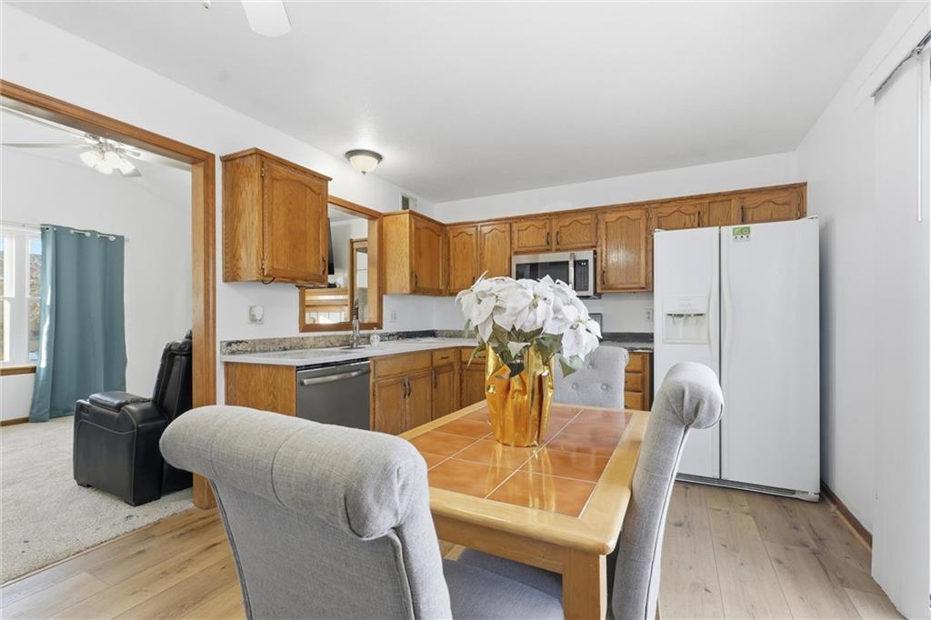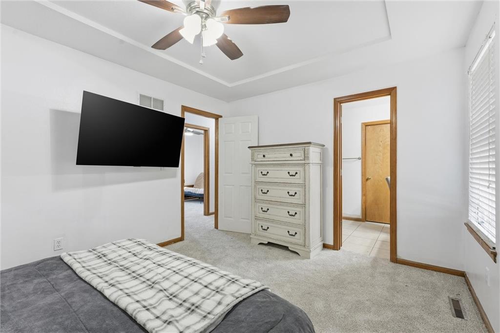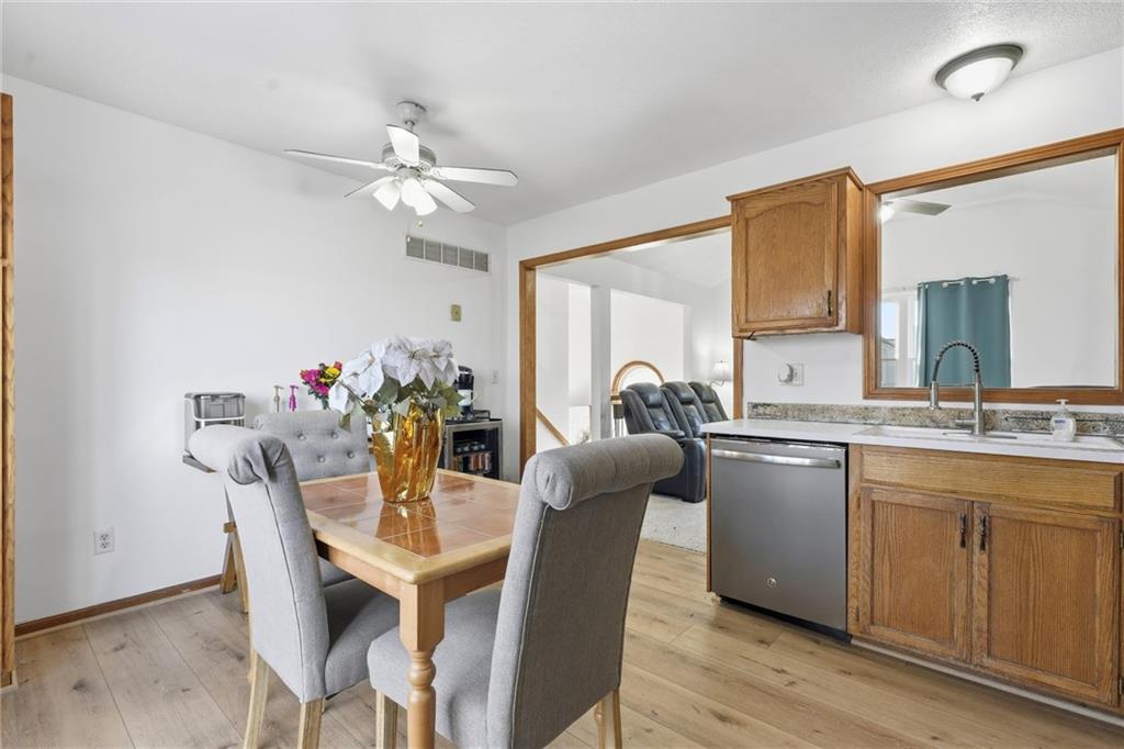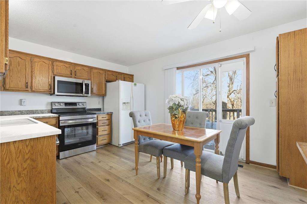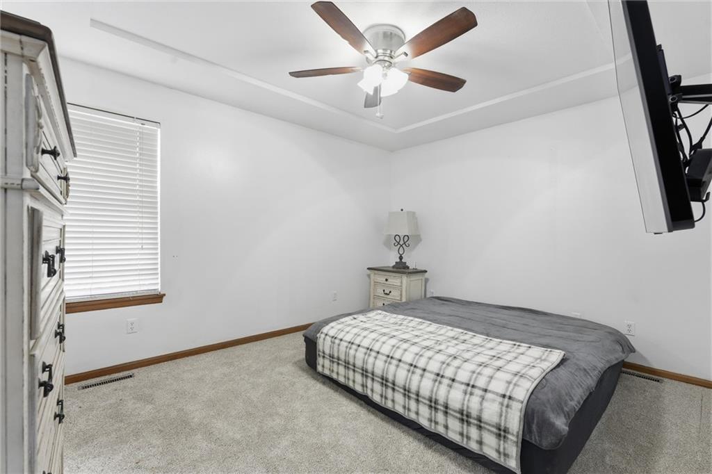 Charming and cozy this move-in ready home with numerous updates throughout is the perfect gift to get yourself this holiday season! Natural light and an open concept feel make this home a showstopper. Interior features include fresh paint throughout the home , brand-new carpet, and new LVP flooring in the kitchen. The undeniably cute kitchen includes a brand new range along with a three year old microwave, and dishwasher. Home is equipped with energy-efficient windows and a walk-in primary bedroom closet. Exterior highlights include exterior paint completed 3 years ago, a roof less than 5 years old, and two new sliding glass doors scheduled for installation this week! Enjoy coffee on the back deck and the convenience of a walkout basement and a 2-car garage. Ring doorbell and Ring floodlights (front and back) stay with the home. Seller is offering a 1-year home warranty for added peace of mind! This well-maintained property is move-in ready and located in the award winning Blue Springs School District. It is a must see! **Sliding glass doors both up and downstairs to be replaced this next week because of delivery delays. More photos to come 12/5.