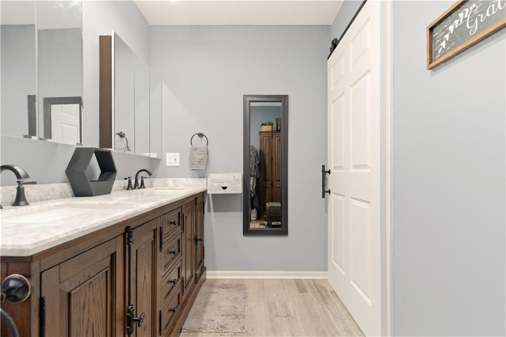 DISCOVER THIS ABSOLUTE GEM IN THE HIGHLY DESIRABLE AND COVETED MILHAVEN ESTATES!! START THE NEW YEAR IN THIS BEAUTIFULLY FULLY RENOVATED 1.5-STORY. This spacious home features 5 bedrooms and 3.5 baths, offering room for everyone. Main level showcases formal living and dining rooms, complemented by timeless wood floors throughout most of the home. An inviting family room highlights a charming brick fireplace for cozy nights in, along with built-ins for storage and stylish décor. Light and bright kitchen is sure to impress any chef with abundant white cabinetry, granite countertops, center eat-in island with second prep sink and stainless steel appliances. Adjacent breakfast area opens to the patio—perfect for grilling and outdoor dining. Convenient laundry and half bath are located just off the kitchen. Main-level primary suite offers a walk-in closet and expanded private en-suite with double vanity and walk-in shower. Two additional bedrooms and a second full bath complete the main floor. Upstairs, find two more spacious bedrooms and a third full bath. A huge, full basement presents a fantastic opportunity for future finish and additional living space. Extra storage abounds with built-ins in the garage and a backyard shed. Enjoy the private fenced yard from the covered patio or relax in the hot tub on the deck. Bonus third driveway provides additional parking! Amazing central location close to parks, dining, shopping and easy highway access. WELCOME HOME!