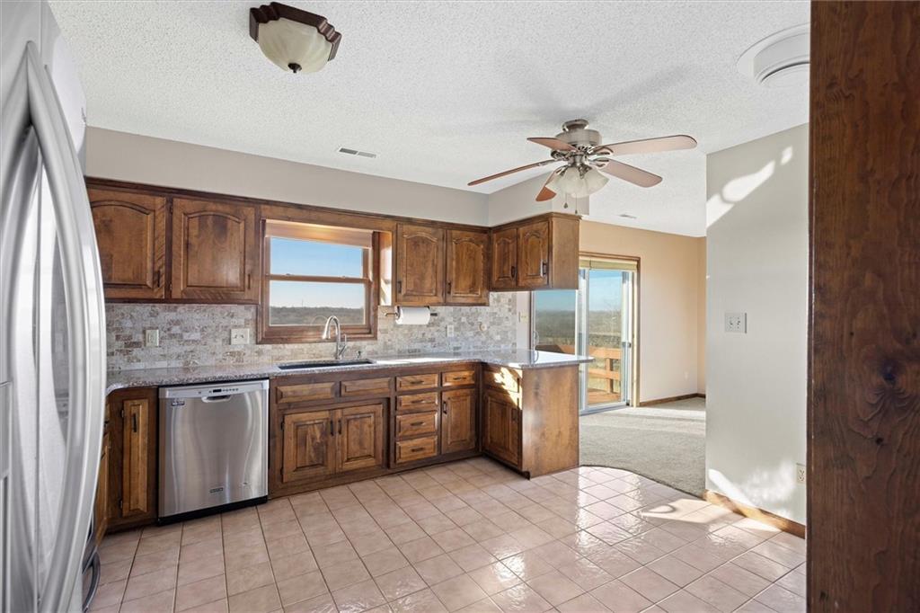 Horizon Ridge Place is a well-cared for home set on approximately 7.20 acres of high-elevation ground, capturing big-sky views in nearly every direction. The property has been pre-inspected, with improvements completed for buyer peace of mind. Inside, you will find a comfortable layout with 3 conforming bedrooms and 3 bathrooms, plus a finished basement that includes an additional non-conforming bedroom and extra living or recreation space. A new wood-burning stove in the basement adds both warmth and character, creating a cozy gathering spot on cooler days. The main floor connects easily to outdoor decks where you can watch sunrises, sunsets, and distant city lights across surrounding brome and pasture. The home includes an attached 1-car garage, and the outbuilding with loft offers additional parking, workshop, and storage options ideal for hobbies, equipment, or future projects. Hard-surfaced access just off US Highway 40 places you minutes from Topeka, with direct routes to I-70 and a straightforward drive toward Lawrence, while still enjoying a quiet rural setting near Tecumseh. This all-electric home is serviced by the rural water district, and AT&T fiber is in place, making this a rare utility combination for country living. Simple protective covenants govern the surrounding Horizon Ridge Estates acreage. Buyers of Horizon Ridge Place will have the first opportunity to purchase the adjacent Horizon Ridge Estates Tract 8, making it possible to expand the homestead footprint if desired.