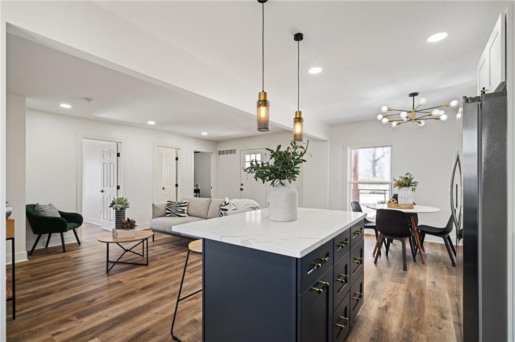 Completely reimagined from the studs up, this beautifully rebuilt 4-bedroom, 2-bath ranch offers the perfect blend of modern updates and comfortable living. Nearly every inch of the home has been thoughtfully rebuilt, giving you the feel of new construction with the charm of a classic ranch layout. The main level features the primary bedroom along with a versatile second bedroom that can easily serve as a home office. Downstairs, you'll find two additional bedrooms and a full bathroom—ideal for guests, family, or extra living space. Enjoy peace of mind with major mechanical updates already done: the roof, HVAC system, and water heater are all just one year old. Inside, stylish LVP flooring runs throughout the home, complementing the bright, airy finishes that create a clean and welcoming feel in every room. With its extensive renovation, smart layout, and modern touches throughout, this home truly stands out as THE ONE to see.