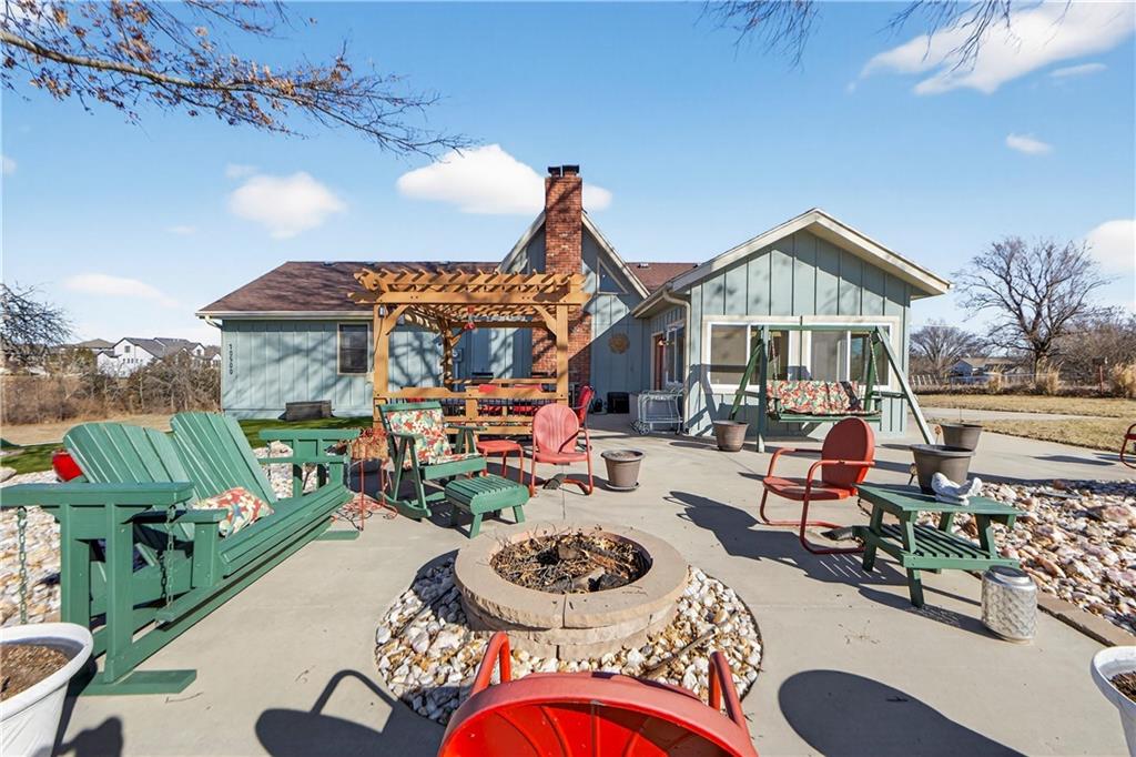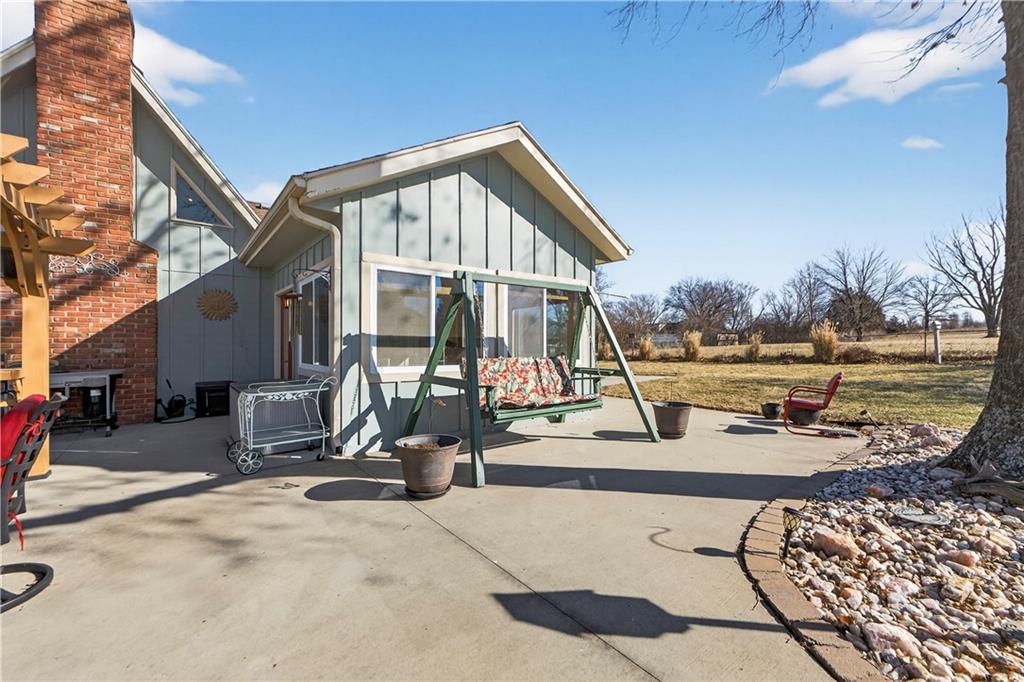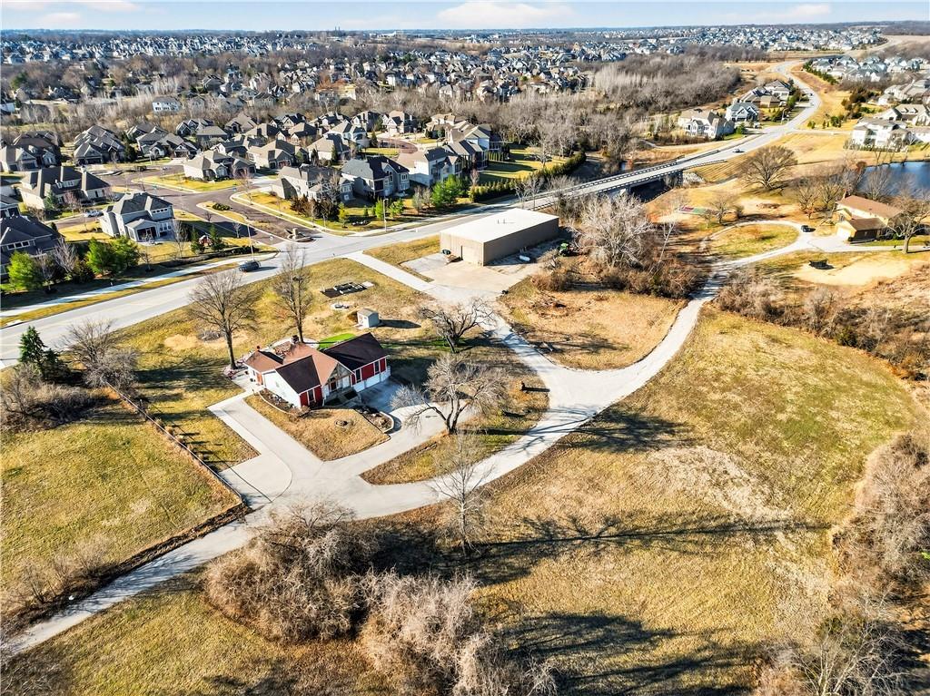 Rare Opportunity on 3.66 Acres in South Overland Park! This unique property offers incredible flexibility with a raised ranch home and an impressive outbuilding—both located within city limits and with no HOA. The home sits on a 1.05-acre lot and features a light, open interior with vaulted ceilings and spacious living areas. The kitchen offers granite countertops, subway tile backsplash, and ample cabinetry, opening to the main living space for easy everyday living and entertaining. A bright sunroom with vaulted ceilings and a wall of windows overlooks the front yard and provides access to the side driveway and patio area with gazebo and partial turf yard. The lower level offers additional living space ideal for guests, hobbies, or storage. The true standout feature of the property is the massive 4,692 sq ft outbuilding situated on its own 2.61-acre parcel. The building includes propane heaters, electrical panel, water source, a half bath, and a 464 sq ft mezzanine that can function as office space or additional storage. Both parcels—totaling 3.66 acres—are included in the sale and share a single access point. Currently zoned residential, this setup creates endless possibilities: operate a home-based business, create exceptional workshop or hobby space, store vehicles and equipment, or build a luxury estate. Located in a rapidly growing area of Overland Park near shopping, dining, parks, and major highway access, this property also sits adjacent to the luxury homes of Garnett Hill—creating a rare opportunity to own acreage in a premier location without HOA restrictions.