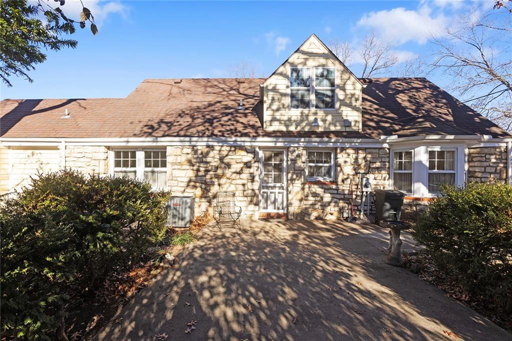 Stone Cottage with Timeless Character, Nestled at the end of a peaceful cul-de-sac on nearly .50 acre. Home backs to Drumm Farm Golf Course, delivering serene views and that “exhale the moment you pull in” feeling. Golden Acres offers a lifestyle that feels increasingly rare today. Tree-lined streets without streetlights create a peaceful, park-like setting where evenings feel calm, quiet, and beautifully natural. Neighbors are outdoors, enjoying walks, friendly, and pride of ownership with well cared for homes throughout the community. This charming home and neighborhood offers a slower pace of living. The cheerful sun porch—with its exposed stone details—offers flexible space for relaxing or home office. Inside, sunlight pours through generous windows, highlighting hardwood floors throughout the main level, a cozy fireplace, and timeless character throughout. The main-level primary suite (added in 2011) offers a private retreat with an ensuite bath and walk-in closet, while the second level provides a potential second primary suite with a dormer, newer windows, and an updated full bath. Thoughtful updates blend seamlessly with the home’s original soul—never trying too hard, never losing its charm. This is the kind of home that feels special the moment you see it—and it was special enough to be featured in the Kansas City Star. Warm, welcoming, and full of personality… this one doesn’t just stand out, it sticks with you. You will enjoy showing this home. Seller is open to working with the right offer.