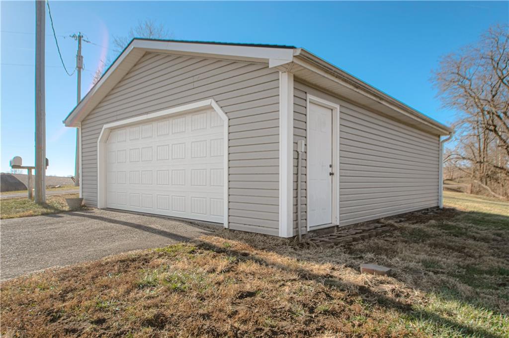 Enjoy the perfect blend of peaceful country living in this charming Dearborn property, located just 20 minutes from Platte City. Surrounded by open farmland with a few neighboring homes on smaller lots to the north, this home sits on open acreage—ideal for hobby farming, outdoor activities, or simply enjoying wide-open space and privacy. This 1.5-story home offers 4 bedrooms and 2 bathrooms, featuring a wraparound deck and a detached 2-car garage/workshop complete with a concrete floor and electrical—perfect for projects, storage, or extra workspace. Step inside to a long, welcoming living room that flows into a formal dining area, creating a great space for gatherings. The kitchen is a separate room and connects conveniently to a full bathroom and the main-level primary bedroom. The primary suite also features its own private deck/back porch—an ideal spot to relax and take in the peaceful surroundings. Just off the dining room, you’ll find the laundry area and stairs leading upstairs to three additional bedrooms and a bathroom. The former upstairs primary was originally two rooms and has been combined into a spacious bedroom with its own bathroom. Two more generously sized bedrooms complete the upper level. This home checks all the boxes: open acreage, country living, a detached garage/workshop, outdoor space, and the convenience of main-level living. The buyer and the buyer agent to verify the acreage.