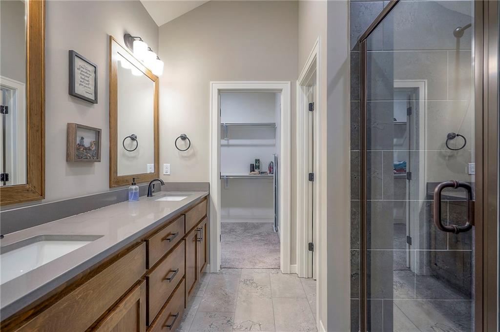 Built in 2024, this Carbondale craftsman ranch plan offers everything you are looking for! The owner built this home with thoughtful details such as an insulated 3 car garage with 8ft doors to fit a full size truck, expanded concrete patio, wrought iron fence, and an upgraded lot backing to trees with no neighbors behind. Wide open layout with lovely stained cabinetry, walk in pantry and green glass backsplash plus a spacious island for all your prep. The eat-in kitchen has seating at the island as well as space for a big table to seat 8+. Main floor laundry and built-in drop zone with organization for shoes and jackets. The primary bedroom suite is a retreat with ceiling details and fan, a bathroom with tiled shower with bench and quartz double vanity. The enormous closet with plentiful hanging space and built-in shelves adjoins the laundry room with built-in folding table or working desk. Enjoy the covered front porch with craftsman wood beams or the level fenced backyard with a view of the trees and pasture. Foxwood Ranch has a community pool, playground and walking trails. The basement has an egress window and is ready for your future finish. Why wait to build? This home is ready now! Full floorplan and walkthrough video available.