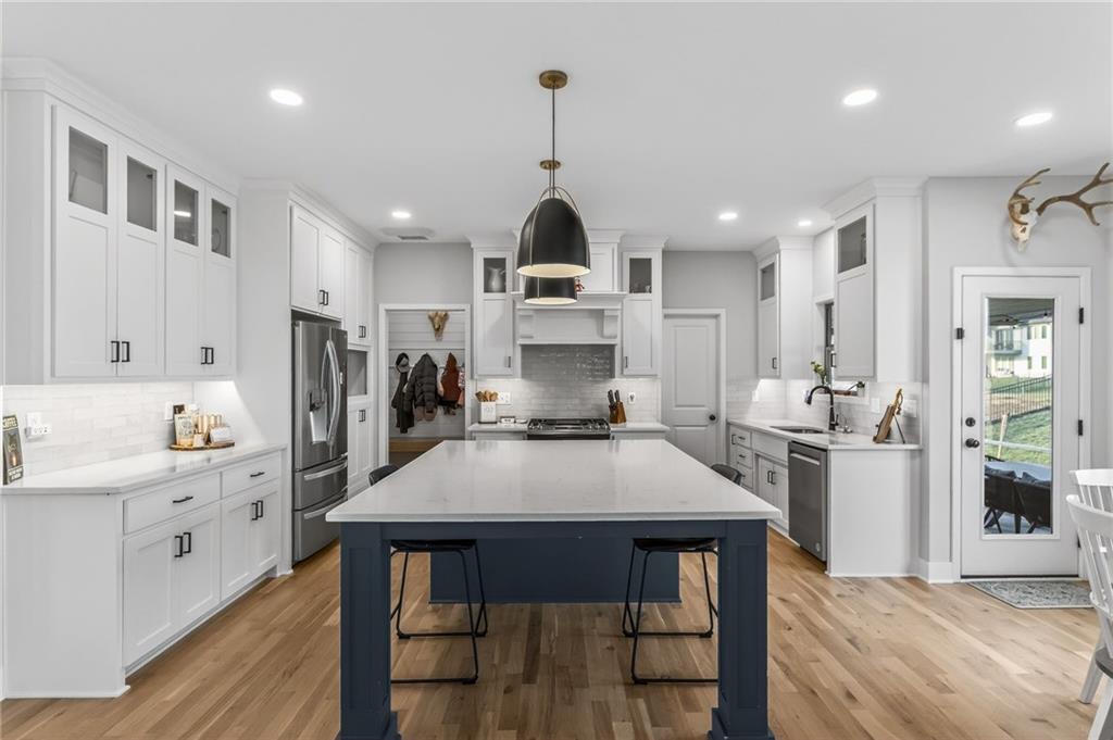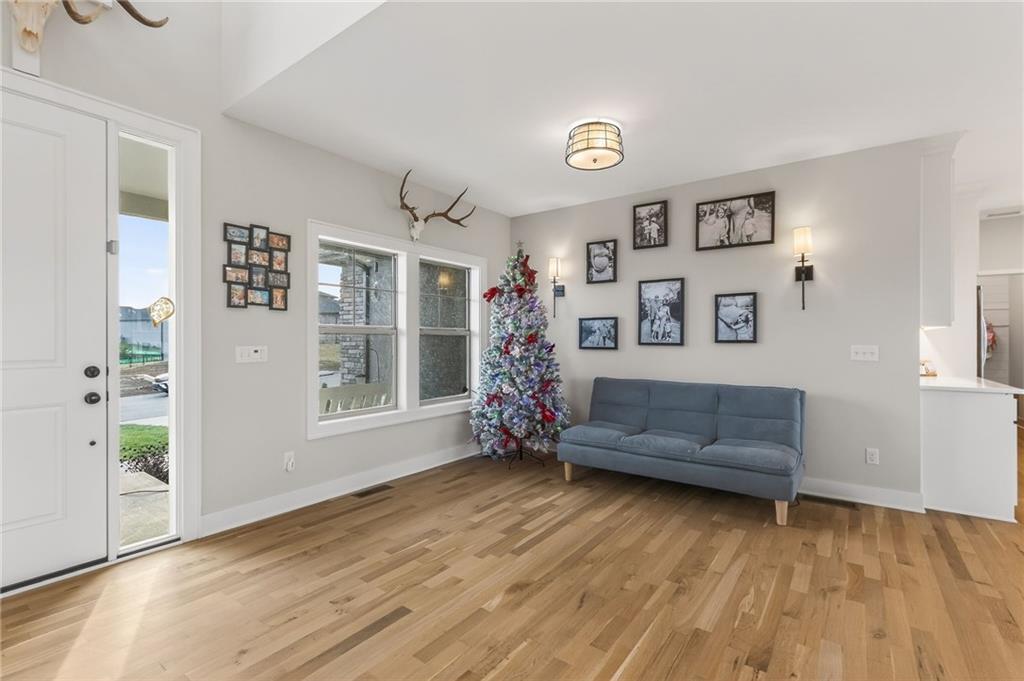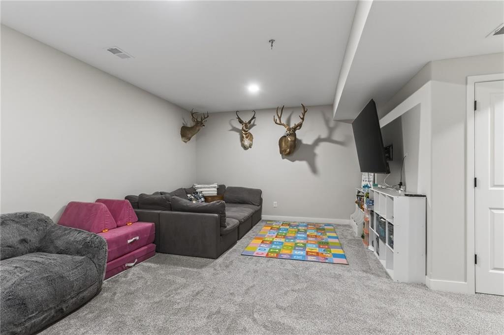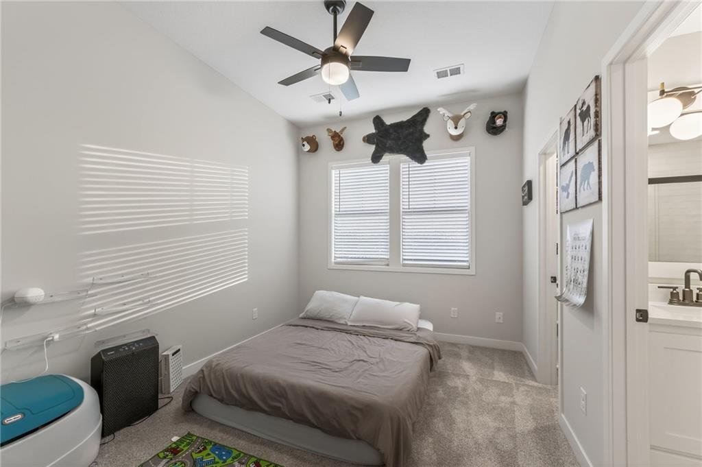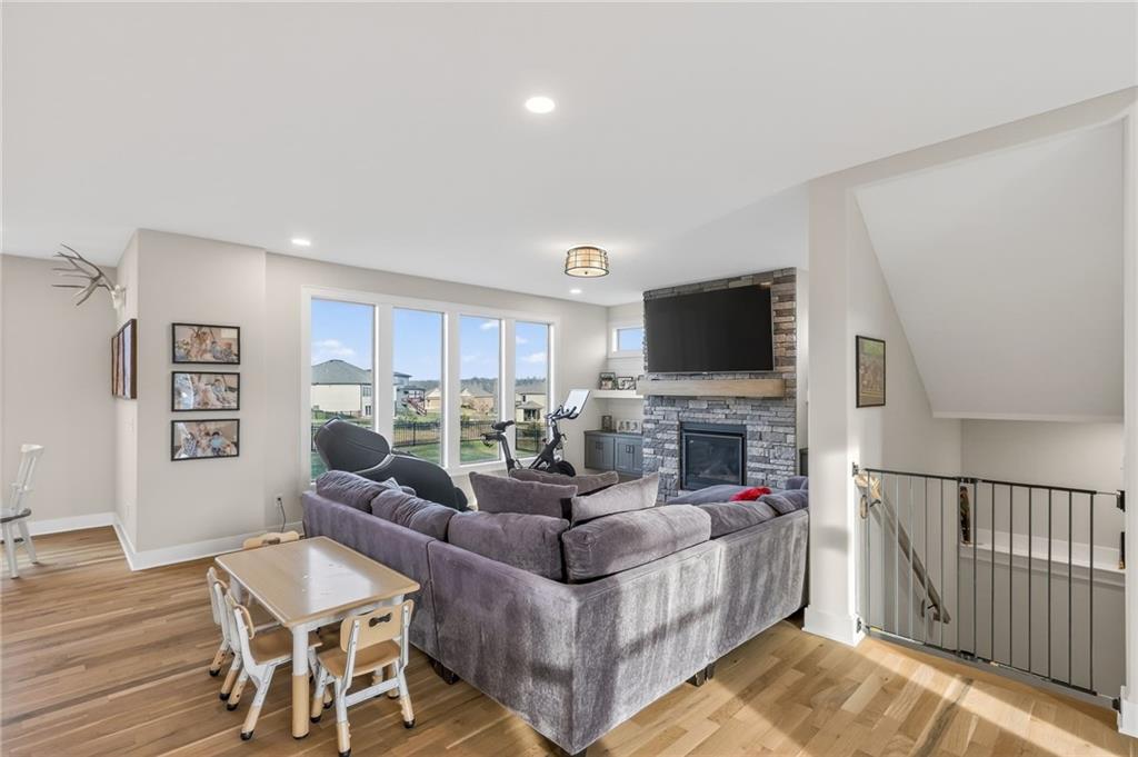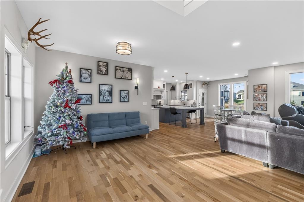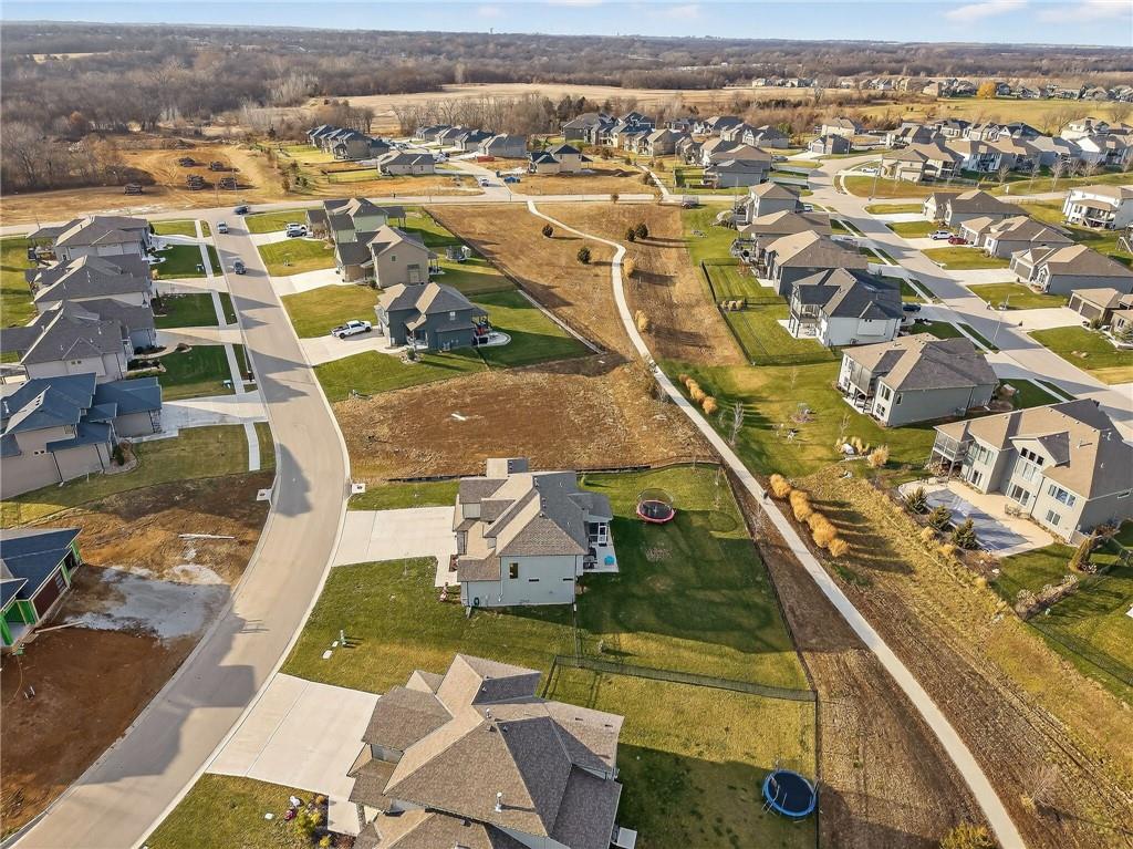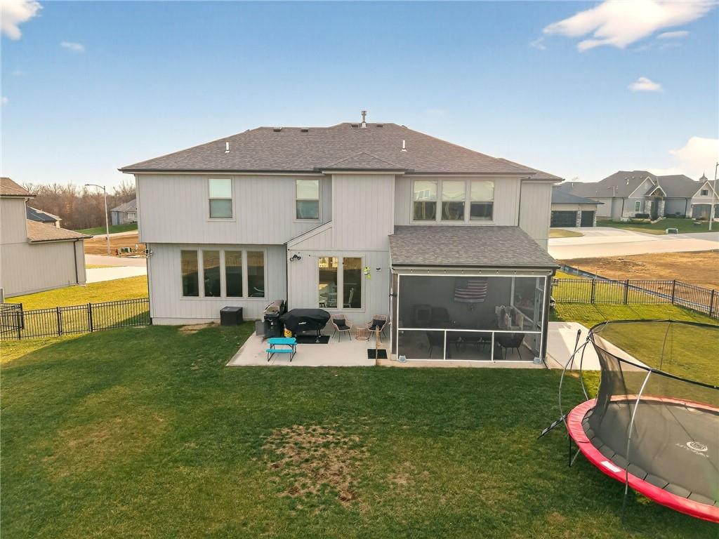 Stunning 4 bedroom, 3 full bath, 2 half bath home built just two years ago in the desirable Woodland Trails subdivision. Thoughtfully designed floor plan with a bathroom connected to every bedroom. Spacious open-concept main level features a large kitchen with oversized island, ample cabinetry, and seamless flow to living and dining areas. Fully finished basement includes a dedicated workout room, private office, and additional living space. Screened-in porch overlooks the fenced backyard with direct access to neighborhood trails leading to the lake behind the home. Community amenities include pool, playground, multiple sport courts, and extensive walking trails. Located in the highly sought-after Lee’s Summit School District. This home offers modern construction, functional design, and exceptional neighborhood amenities.