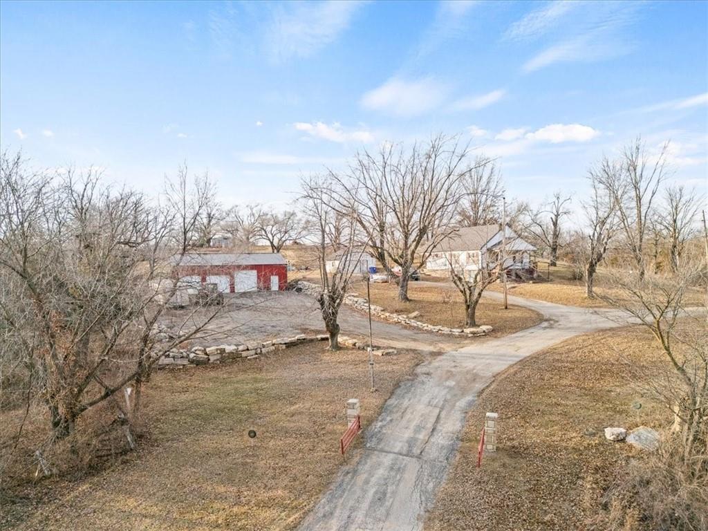 Charming Ranch Farmhouse on Nearly 20 Acres with Creek, Shop & Prime Location The nearly 20 acres offer a beautiful quiet setting with abundant of natural scenery. The land also provides excellent opportunities for turkey and deer hunting. Really nice ranch-style farmhouse offering 2 bedrooms and 1 full bath, perfectly situated on 19.87 rolling acres. The home features include newly updated cabinets and laminate flooring in the kitchen and family room, while the office room is carpeted with stairs to the basement. The land is a standout feature—Turkey Creek runs through the property, providing scenic views and natural beauty. The acreage is fully fenced and ideal for outdoor enthusiasts, with excellent opportunities for turkey and deer hunting. A large shop located next to the home offers endless possibilities for storage, a workshop, equipment, or future projects. Enjoy the best of country living with easy highway access, and The Legends shopping, dining, and entertainment area just a 5-minute drive away. Added bonus: this beautiful property’s value has been positively impacted by the recent announcement of the Kansas City Chiefs’ new stadium planned for Wyandotte County, expected to be just a short 1-2 minute drive from the home. Whether you’re seeking a peaceful country retreat, recreational property, or a small farm setup, this property delivers space, privacy, convenience, and long-term potential.