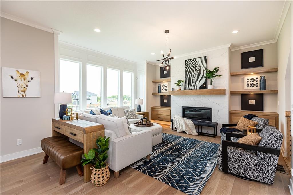 Gabriel Homes popular Makenna floor plan sits on lot 91 in Southern Meadows...Overland Parks newest premier community. Enjoy your oversized flat lot, and all of the cool features you have come to love with this floor plan. Exterior includes incredible curb appeal featuring double doors at entry and black windows on the front. Main floor has hardwoods throughout, upgraded trim detail, cabinets to ceiling in kitchen, built in's next to fireplace, 10' ceilings and covered patio off of the kitchen. 2nd floor is equally as impressive with oversized bedrooms, fantastic primary suite featuring a barn door and free standing tub. Large walk in closet and so much more! This home will be complete in late 2026. You are still able to select colors. Home is currently in permit stage. Photos of finished home are same floor plan but not the actual home. Features and finishes will vary.