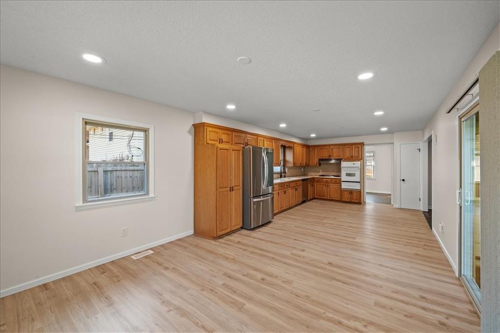 Welcome home to 6805 N Wayne Ave! Raised Ranch home with oversized lot corner lot! Open kitchen features plenty of cabinet space, eat-in area, and new flooring. Cozy living room with fire place. Master has full private bathroom. Basement has rec room, non-conforming bedroom, full bathroom, and storage area. Extended garage with work space. Fully fenced yard with extra driveway, amazing patio, and hot tub area. All new interior paint and refinished hardwoods. Close to shops, highways, and schools. Welcome Home!