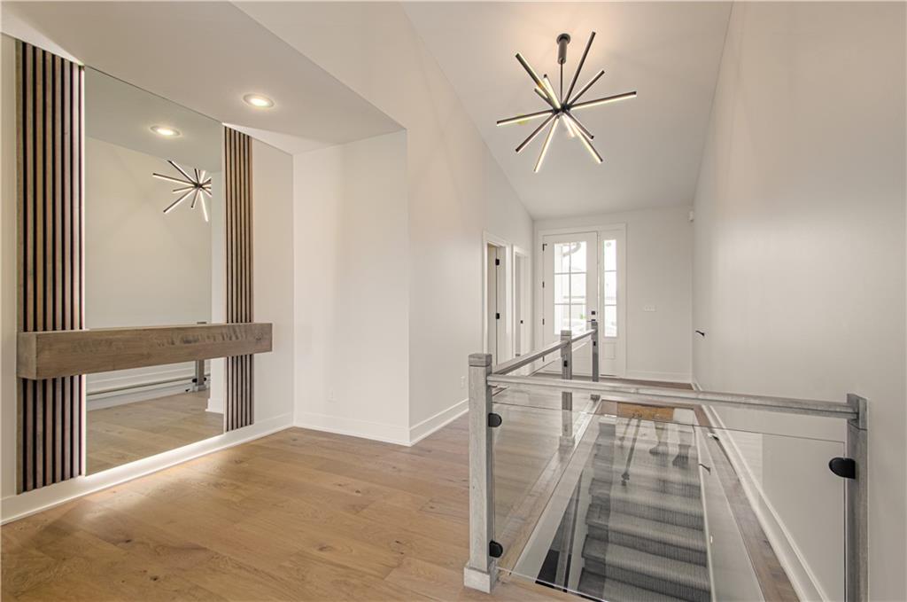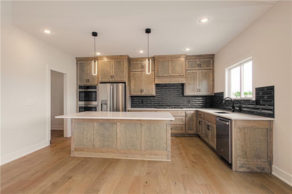 This brand-new, beautifully crafted Reverse 1.5 Story home offers a total of 5 bedrooms and 3 Full baths! This Stunning Home boasts Vaulted ceilings in entryway, living room, and dining room,Vaulted 13' ceilings in master bedroom and office/bedroom #2 A Custom front entry way nook feature (full glass ceiling to floor with mantle) Featuring A Fireplace Wall in the living room made of Venetian plaster, an Extra large master shower Built-in drawer cabinet in master closet Custom lighting at master bedroom headboard location with separate switching for night time Extra large mud room Extra large two-tiered deck with composite decking and large patio beneath entire deck Stair lighting included Set-up for projector in basement (pre-wire only - no hardware included)Pre-wired for speakers in kitchen and on deck Pre-wired for security cameras on front of house CAT-6 to all tv locations including projector in basement as well as two drops in office for computers The house boasts exceptional finishes and meticulous craftsmanship, showcasing elegant wood floors, and custom cabinetry throughout. The private master suite is a true retreat, exuding luxury and comfort. The gourmet kitchen is a chef's dream, complete with an island, butlers pantry, and top-of-the-line appliances, making it perfect for culinary enthusiasts. The lower level extends the living space and offers 3 additional bedrooms. Whether you're hosting gatherings or enjoying quiet moments, This Stunning Home caters to your every need! Located in The Silverbrooke Subdivision and the ParkHill School District. This home is complete and move-in-ready!