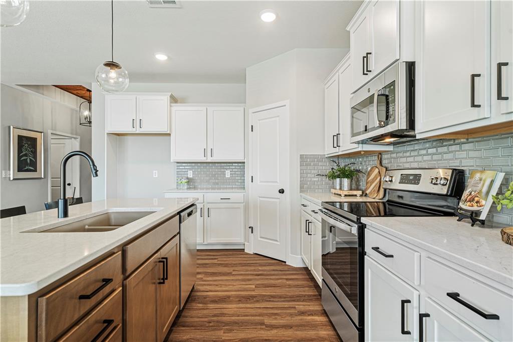 Welcome to the innovative design and modern style of Ashlar Homes! The popular Graysen plan, featuring the Modern Heritage elevation. Experience the perfect blend of modern elegance and functional design in this stunning new construction ranch. This home features high-end James Hardie® board with ColorPlus® Technology siding and advanced double-wall construction. Spanning 1,683 square feet on the main level, the home welcomes you with an open-concept great room featuring a dramatic box vault ceiling with custom car siding detail and a floor-to-ceiling stone fireplace with a wood mantle. The chef-inspired kitchen is equipped with Frigidaire® stainless steel appliances, a gas stove, beautiful quartz countertops, and a custom tiled backsplash. Retreat to the expanded primary suite, which boasts a ceiling fan and a luxurious bathroom finished with tiled floors, a walk-in tiled shower, and quartz vanities. Attention to detail is evident throughout with an upgraded trim package featuring taller baseboards and fully trimmed windows. Outside, enjoy a widened driveway leading to an insulated three-car garage, and relax on the 12x12 composite deck or lower patio. The massive walk-out unfinished basement is already stubbed for a future bathroom, offering a blank canvas to expand your living space. Come see Spring Hill's newest affordable choice for new home construction, at Fox Hollow! Under construction and Coming Soon! At framing stage.