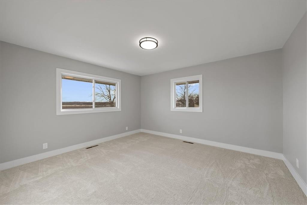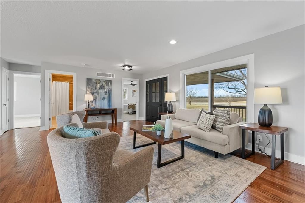 Here's your opportunity to own 10 acres with the option to buy an aditional 7.5 acres & a fully renovated ranch house! 3,017 sq ft ranch home on 10 acres with 4 beds, 3.5 baths, finished walkout basement, and flexible main-level office/4th bedroom. Modern updates blend with classic ranch design—perfect for buyers seeking space, privacy, and country living with style. At the heart of the home is an all-new kitchen featuring abundant cabinetry, quartz countertop surfaces, and brand-new appliances—designed for both everyday living and entertaining. New bathrooms, all new windows, doors, flooring, HVAC System, Electrical Box and wiring, Siding, Exterior and Interior paint and all-new fixtures throughout reflect the home’s comprehensive renovation and elevated finish. Everyday functionality shines with an expansive mudroom and main-level laundry, along with a walk-in pantry complete with a convenient grocery door to the garage. The finished walkout basement extends the home’s versatility, offering a wet bar, professional epoxy flooring, and a striking glass-and-tile walk-in shower—ideal for hosting, relaxation, or extended living. The 2.5-car side-entry garage has new epoxy floors, providing durability with a polished look. Outdoor living is enhanced by a large new deck and expansive concrete patio overlooking the peaceful, open acreage. Additional amenities include a 40x60 outbuilding with electricity and a convenient lean-to, perfect for equipment, animals or additional storage. Paved road access—no gravel. The buyer receives first right to purchase the adjoining 7.5 acres, offering potential for added privacy or future expansion. NO HOA. No fencing. Just space, freedom, and the opportunity to make it your own.