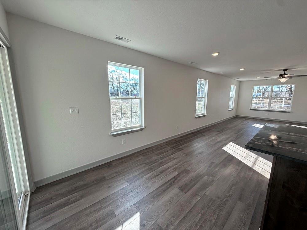 New-Construction Ranch Home in El Dorado Springs: This new-built home, located in a beautiful neighborhood on the south side of El Dorado Springs, will be ready for its first owner in January 2026. The 1,401 sq ft home sits on a level .26-acre lot surrounded by a neighborhood of newer homes. The maintenance free exterior showcases an attractive combination of siding and stone and accented by a front patio and a back BBQ/coffee patio. The main living space is a combination of the living room, dining room, and kitchen that is perfect for entertaining and allows for tons of natural lighting with 2 west-facing windows and 3 south-facing windows. The custom cabinets, with soft-close doors and drawers, granite counter tops, kitchen island, LED lighting, and new black appliances make this a top-tier and attractive kitchen. There are 3 bedrooms and 2 bathrooms with one bathroom ensuite to the master. A 2-car garage is attached. This home has no steps, a 1-year builder’s warranty, low maintenance, and a perfect location for walking, biking, and quick errands to town. Call today and schedule a private showing as the final touches are being finished on 1803 S Elm St in El Dorado Springs.