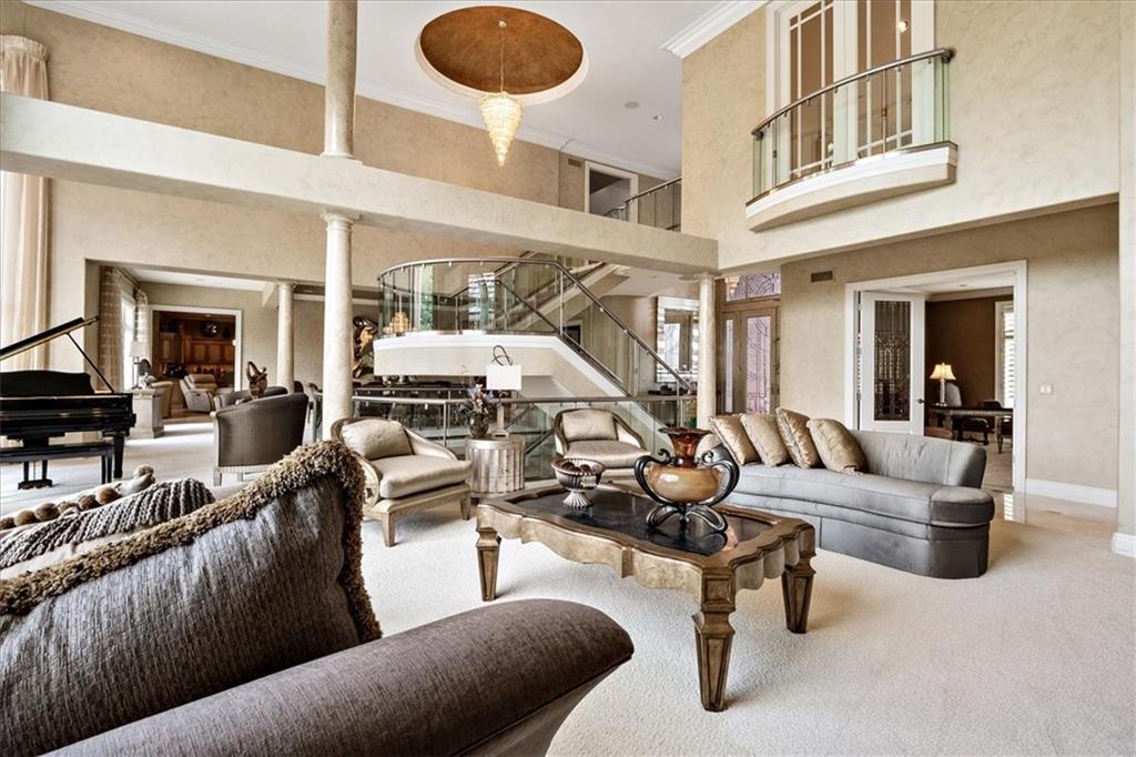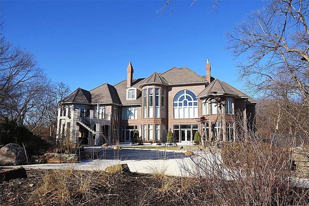 A most remarkable Home in the WEST SHORE area of RISS LAKE in Parkville, Platte County, Missouri. Relax in the Security provided by this Reserved Gated Community. You are greeted with an Impressive Circular Driveway and Stylishly Designed Home featuring an Extensive Glass Entry. The Concrete Tile Roof (replaced 2 years ago) caps a Full Brick Exterior with Coin Corners, Herringbone and Soldier Brick patterns. Inside are Soaring Ceilings on the main level with Entry Chandeliers that raise and lower for cleaning, Electric Blinds, Whole House Sound System and Custom Lighting throughout. A Suspended Curved Stainless Steel, Brass and Glass Staircase leads you from the Terrace Level through the Third Level of this Amenity Rich Home. The Theater Room, Gym, Full Bath with Steam Shower, Full Bar, Entertainment Room, Gourmet Kitchen with VIKING Appliances plus a Second Kitchen with KitchenAid Appliances on the Terrace Level bring a luxurious feel to the home. Private Office, Playroom, Covered Lanai and 10-foot Basement ceilings will all add to your enjoyment of this home. This Custom-Built Home is attractively situated on a Large Estate Homesite on the Point of Riss Lake with an Expansive Deck offering an Excellent view of the 130+ Acre Lake. These Amazing Lake Views can also be enjoyed from virtually all the rear windows of the home. Upgrade your leisure time in the In-Ground Concrete Pool featuring a Waterfall, Hot Tub and SO MUCH MORE!! A must see!