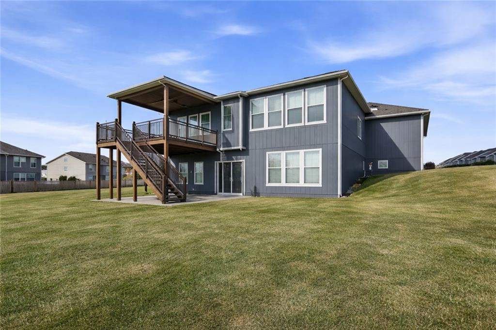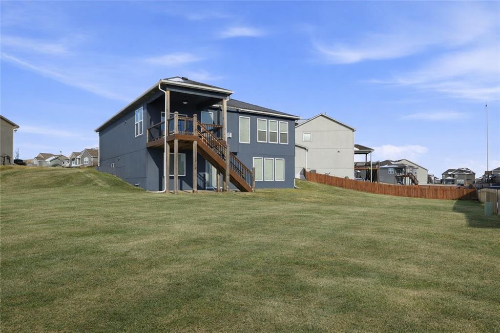 Stunning 4 bedroom, 3 bath home with a finished lower level in a highly desirable Lee’s Summit community! This wide-open floor plan is loaded with upgrades and “bells & whistles,” including granite countertops, custom cabinetry, pendant lighting, gas fireplace, walk-in pantry and an in-ground sprinkler system. The spacious kitchen opens seamlessly to the main living area—perfect for everyday living and entertaining. The oversized primary suite, dedicated office space, laundry room and guest bedroom are all conveniently located on the main level. Step outside to enjoy the covered deck overlooking a huge walkout courtyard-style backyard—ideal for relaxing or hosting guests. The finished lower level offers incredible additional living space with a rec room, bedroom, full bath, and ample storage. Residents enjoy resort-style amenities including a new clubhouse, 3 swimming pools with covered cabanas, 3 community playgrounds, and a sand volleyball court. Located adjacent to Osage Trails Park, providing easy access to walking trails, picnic areas, and additional playgrounds. This family-oriented neighborhood is within the Lee’s Summit West School District and is just minutes from charming Downtown Lee’s Summit, premier golf courses, and outdoor recreation at Longview Lake and James A. Reed Memorial Wildlife Area. A perfect blend of comfort, location, and lifestyle—this one is a must-see!