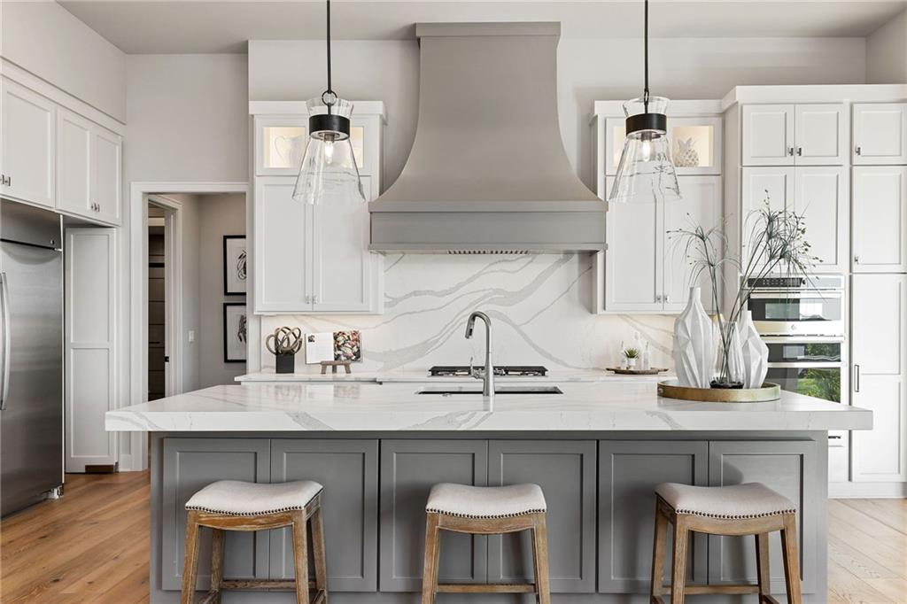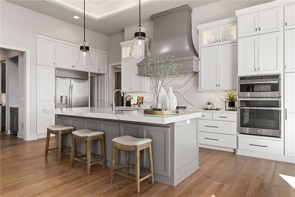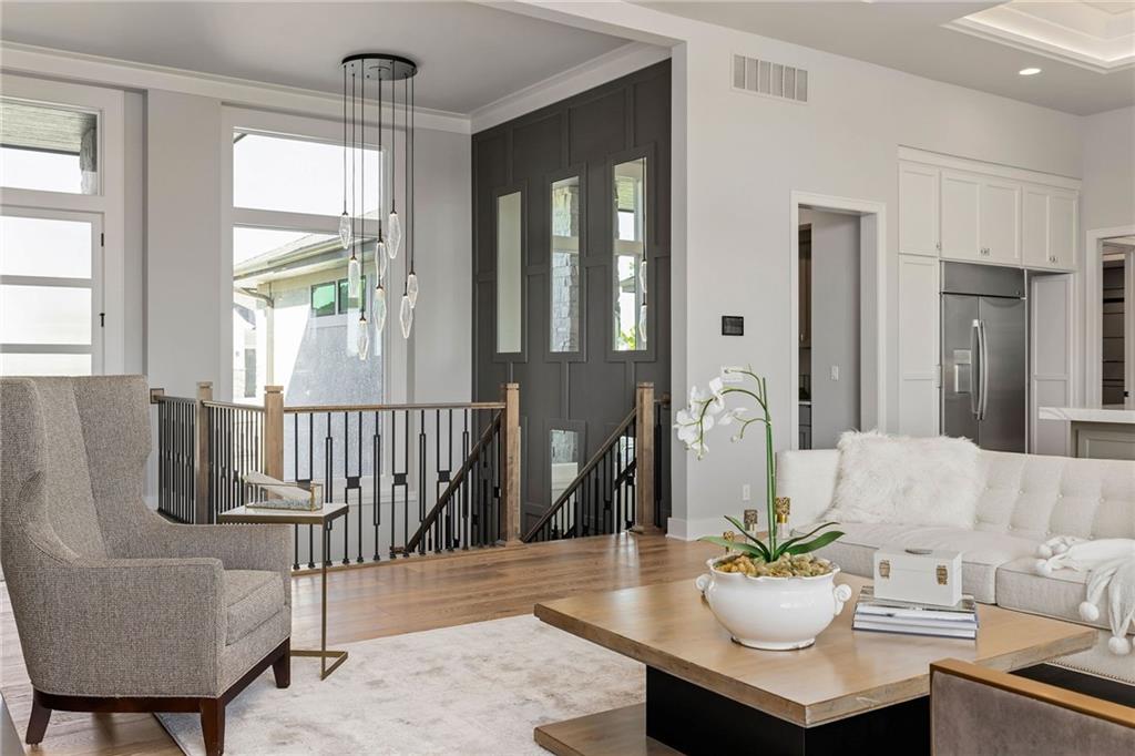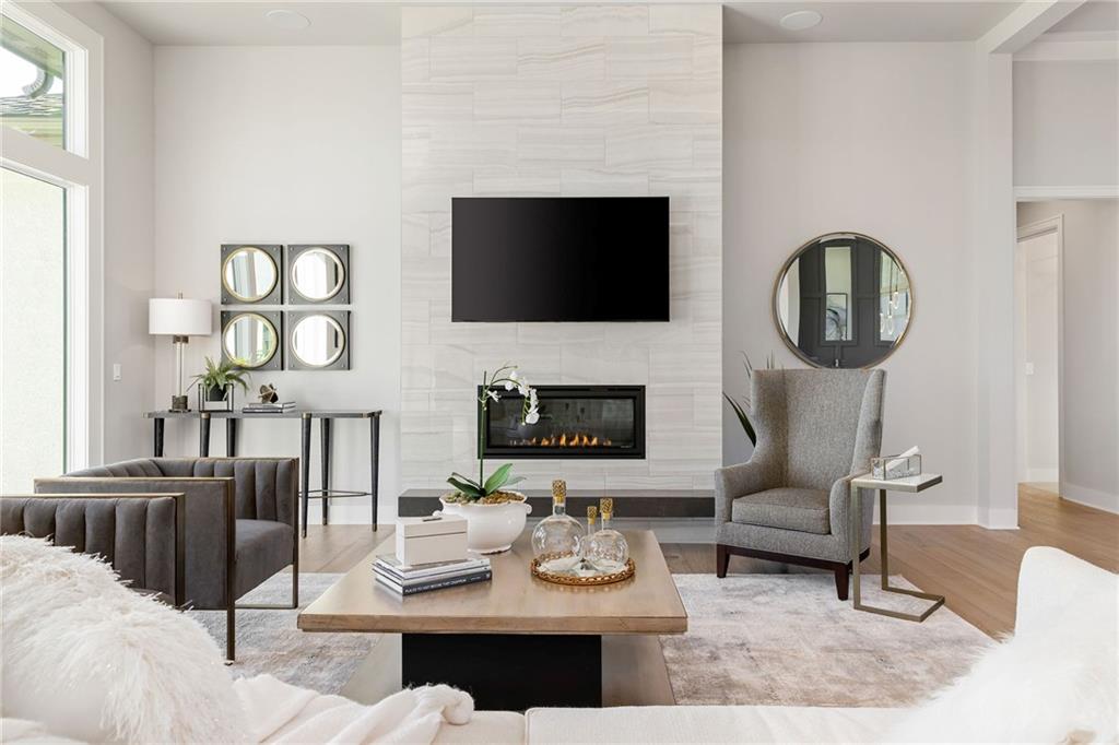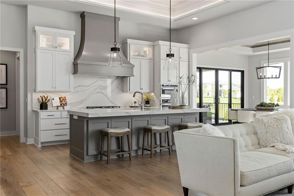 The highly sought-after Mustang plan by Willis Custom Homes is now underway at REGENTS PARK in Leawood on premier walkout Lot 1, with estimated completion in Late Fall 2026. You can still make selections and customize this home! This reverse 1.5-story home blends timeless architecture with a livable layout designed for both everyday comfort and entertaining. Upon entry, a striking two-story feature wall along the staircase creates a strong architectural moment while maintaining a clean, spacious entry. The main level is anchored by a great room featuring three box-vaulted ceiling details with custom trim and cove lighting, adding depth and volume to the heart of the home. The kitchen flows seamlessly into the dining area and great room, while a generously sized pantry and convenient garage entry enhance daily functionality. Just off the kitchen, a flexible main-level room with sliding doors provides direct access to the covered deck-ideal for a home office, guest space, or additional living area. The covered deck features a fireplace and stairs leading down to the backyard, extending the living space outdoors and taking full advantage of one of the community’s limited walkout lots. Main-level primary suite offers a private retreat with a spa-like bath and generous closet space. Finished walkout lower level is a true extension of the home, centered around a large entertainment room with a full bar, dedicated wine storage, game table area, & access to the covered patio. Additional bedrooms and bathrooms provide comfortable accommodations for guests or family. Regents Park is Leawood’s newest maintenance-provided luxury community, tucked behind the 135th Street corridor with shopping, dining, & entertainment minutes away. Amenities include a pool, pickleball court, dog park, and walking trails. HOA is $450/month. Photos are of a previously completed model; finishes will vary. Reach out for a full list of options & the opportunity to customize this home.