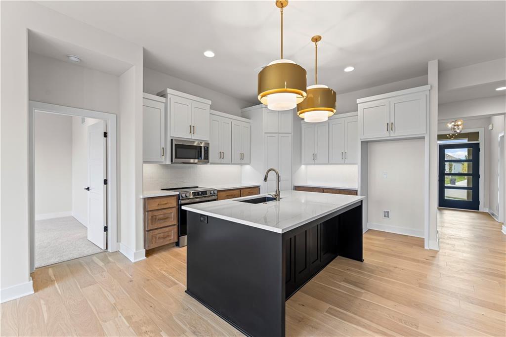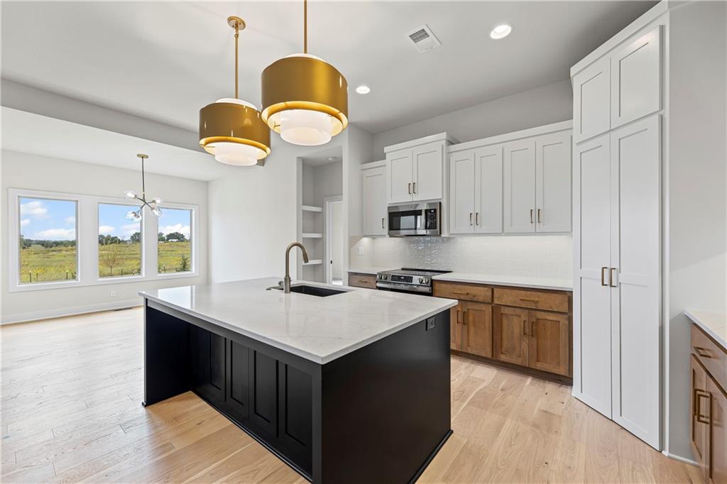 The Woodbury is a popular new reverse-plan by SAB Homes on lot 69 in The Enclave at Boulder Hills and will be ready in late April. It is an open-concept floor plan that packages everything you want in reverse, with a modern exterior design. The great room is wide open to the kitchen and dining room, creating an open and airy feel. In the great room you'll find built-ins flanking both sides of the fireplace. Step out to the 17'x10' covered patio from the great room and you'll find space to take in the outdoors and seasons. You'll find closets thoughtfully thought out at both the front entry and garage entry with a mud bench between them to all your catch coats and clutter. The primary suite features a double vanity, shower, and a large primary closet with hook-ups for a stackable washer/dryer. The large, additional front bedroom on the main floor is a great office or guest bedroom. The finished lower level offers a large family room, an additional bedroom with a full bath and plenty of storage space. Enjoy a carefree lifestyle in this maintenance-provided community with lawn care, irrigation service, and snow removal for $198/month. Annual $900 HOA includes access to resort-style amenities: pool, fountains, outdoor kitchen and fireplace, pickleball court, putting green, clubhouse, and playground. The neighborhood sits directly across from Heritage Park. This home is at the mechanical stage and will be ready in late April.