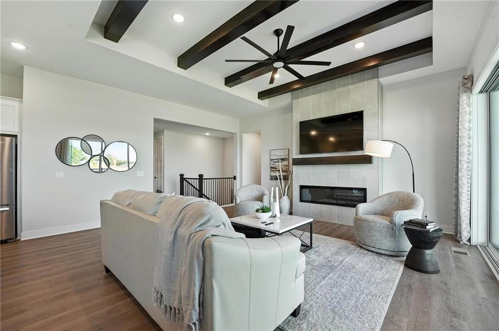 The popular Thomas model by Hakes Brothers features 3 main-level bedrooms, 2.5 baths, a 2-car garage, and an unfinished basement ready for your personal design. Upgrades include a stacking patio door, 8-foot main-level doors, a gourmet kitchen with built-in stainless-steel appliances (gas cooktop, oven, microwave), and an irrigation system for new sod. Located in Grayhawk at Prairie Gardens, the community offers a pool, playground, green space, and walking trails. Just minutes from The Legends shopping and dining, quick access to K-7 and major highways, and about 30 minutes to Kansas City International Airport. Top-rated schools, nearby retail, and a vibrant community atmosphere make this a must-see home.
