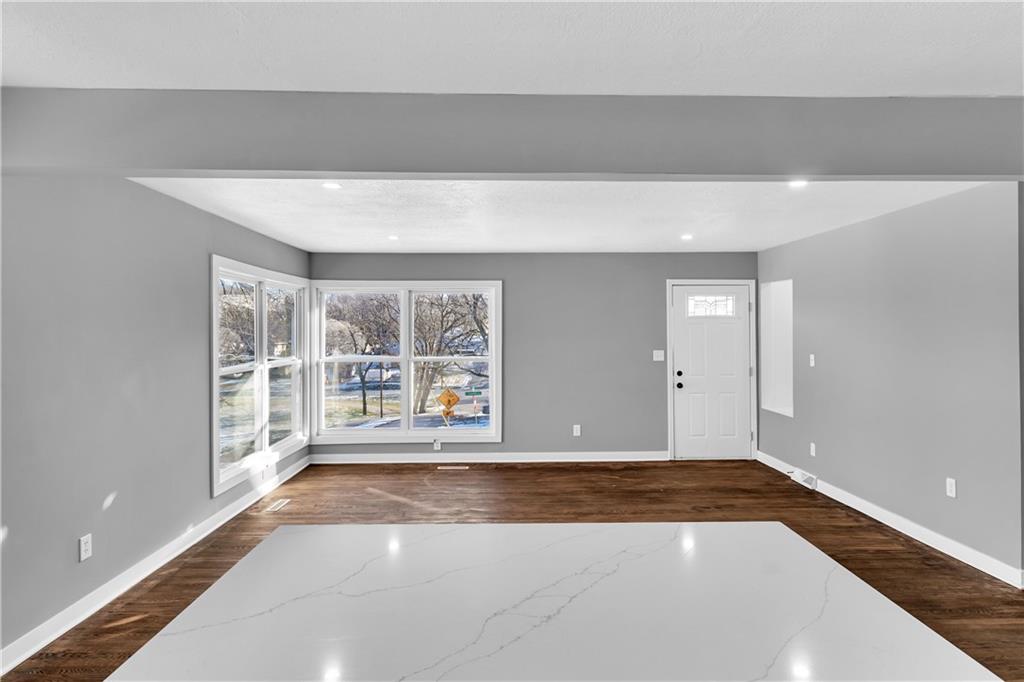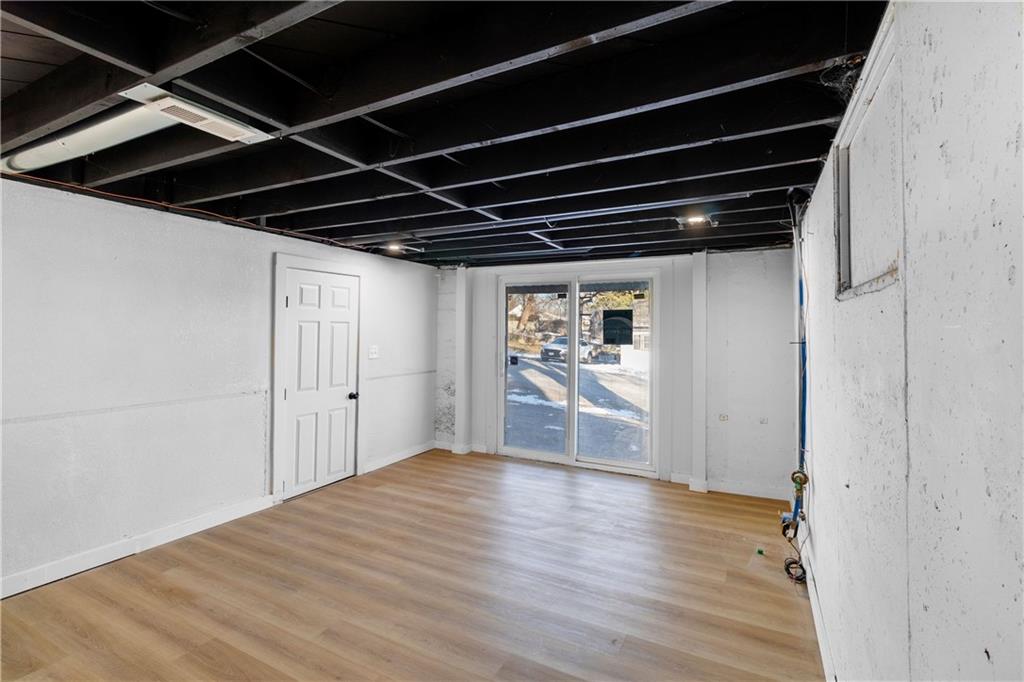 Beautiful, turnkey, 2 bedroom, 2 bath home perfect for first time homebuyers or investors! This move in ready property features new modern flooring, fresh contemporary paint throughout, and all new energy efficient windows that provide abundant natural light. The bright white kitchen showcases stylish subway tile, new countertops, new appliances, and ample cabinet storage, making it both functional and inviting. The main bathroom offers a shower/tub combo with pristine tile work and modern finishes. A fully renovated secondary bathroom in the basement features a walk in shower, new vanity and updated light fixtures. Enjoy additional living space in the finished basement bonus room, complete with a unique industrial style ceiling and walkout access to the yard. Outside, you'll find a generous open yard, ideal for entertaining or relaxing. Located just 15 minutes from downtown Kansas City, this home offers both convenience and comfort. All major systems have been updated, including a one year old roof, brand new HVAC, and new water heater, providing buyers true peace of mind.