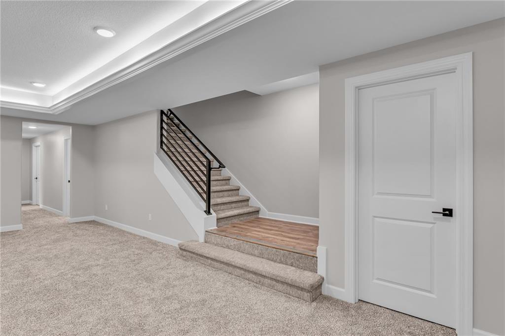 The Bridgeport III floorplan built by Drippé Homes. Open concept daylight basement with tons of natural light! Kitchen furnished with stainless appliances, gas cooktop, hood vent, microwave, wall oven, quartz countertops, large island with oversized sink and spacious walk in pantry. Three bedrooms on main with primary opposite other bedrooms. Ensuite features double vanity, tiled walk-in shower, private water closet and gigantic closet with pass through to laundry. Mudroom off garage with boot bench. Finished basement with two additional bedrooms and rec room complete with wet bar, ready for hosting the next big game. Cozy up to the fireplace in the living room or enjoy the sunrise from the covered composite deck. Home backs to tree-line providing ultimate privacy with sod and sprinkler system included. Unfinished basement storage and three car garage provide plenty of storage. Estimated completion March 2026.