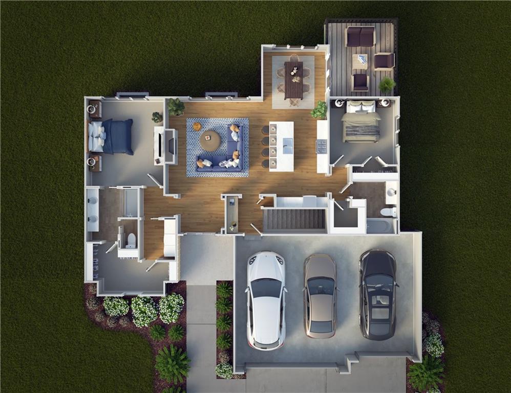 The Bridgeport II floorplan built by Drippé Homes. Modern finished open concept daylight basement with tons of natural light! Kitchen furnished with stainless appliances, gas cooktop, hood vent, microwave, wall oven, quartz countertops, large island with oversized sink and spacious walk in pantry. Two bedrooms on main with primary opposite other bedroom. Ensuite features double vanity, tiled walk-in shower, private water closet and gigantic closet with pass through to laundry. Mudroom off garage with boot bench. Finished basement with two additional bedrooms and rec room complete with wet bar, ready for hosting the next big game. Cozy up to the fireplace in the living room or enjoy the sunrise from the covered composite deck. Home backs to tree-line providing ultimate privacy with sod and sprinkler system included. Unfinished basement storage and three car garage provide plenty of storage. Almost ready for your personal touch - schedule a showing today!