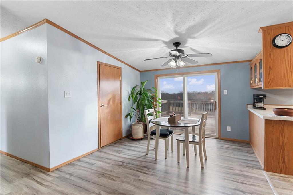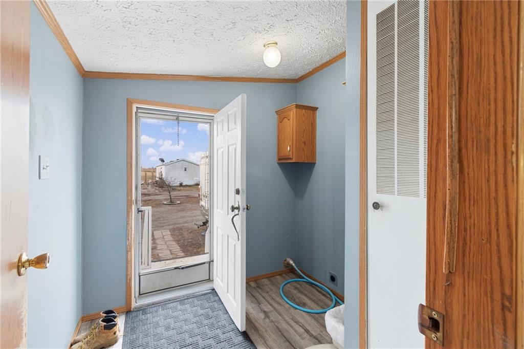 Nestled on 6.7 scenic acres with blacktop frontage, this 1999 well maintained, manufactured home offers the perfect blend of comfortable living and country charm. The main level features 3 bedrooms and two full bathrooms, a welcoming spacious living room with a wood-burning fireplace, and a formal dining area ideal for gatherings or use as a home office. The kitchen comes fully equipped with appliances. The walkout concrete basement is partially finished and includes a wood burning stove, offering additional living or recreational space with room to expand. The seller will also leave additional building materials. Major updates include a roof and an updated HVAC system. Outside the property truly shines with raised garden beds, a greenhouse, chicken coop, mature trees, and private trails - perfect for enjoying nature and local wildlife. There is also a detached two-car garage. While the home is on rural water, there is also a private well for added versatility including gardening! This property is ideal for buyers seeking a little piece of country living! Government loan buyers are welcome! Make your appointment today.