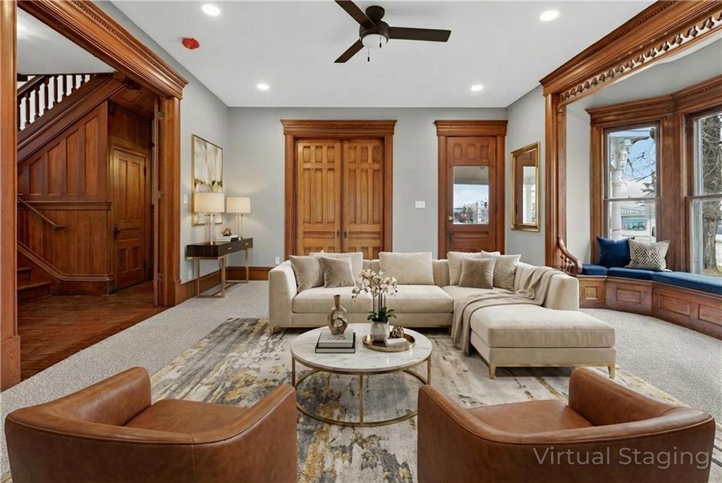 Feel like you're are on vacation every day when coming home to this beautiful turn of the century retreat! Upon entry, your breath will be taken away by the beautiful hand crafted wood work, lead windows & lighting. Original decorative 19th century fireplaces with French tile design & cast insets are a focal point in the front entry library, living room & dining room areas. Enjoy the reading porch found off the living room, or open the oak pocket doors separating 3 rooms & create a great room for entertaining friends. Hand crafted custom details are found throughout the entire home. Although much of the original beauty has been restored, many modern updates are also found to provide comfort & energy efficiency, making this a home you can truly enjoy. Nestled in the historical district of Fort Scott, this home offers endless opportunities due to it's size, location & functionality. Love it as your personal home, or consider using as an Air B&B, office or other venture. The chef's kitchen is a DREAM featuring butcher block counters, white painted cabinetry, all new stainless appliances & accented by white ship lap walls keeping the historical theme intact. The flooring design sets the kitchen apart with a wow factor all of it's own! Off the kitchen you'll find access to the concrete wine/storm shelter, great for storage & extra peace of mind during inclement weather. On the 2nd floor, amazing large bedrooms are found, each with their own unique features & modern updates such as walk in closets, new carpet, recessed lighting, coupled with original charm, woodwork & detail. You'll especially love the two large picture windows with seated/storage windows & antique accent window lights. After a long day, retreat to the 2 spa influenced master baths & enjoy the rain shower, soaking tub & features that were custom designed with pampering you in mind. The home has new electric, plumbing, insulation, Heat & Air, insulated windows, instant hot water, smart thermostat, & more.