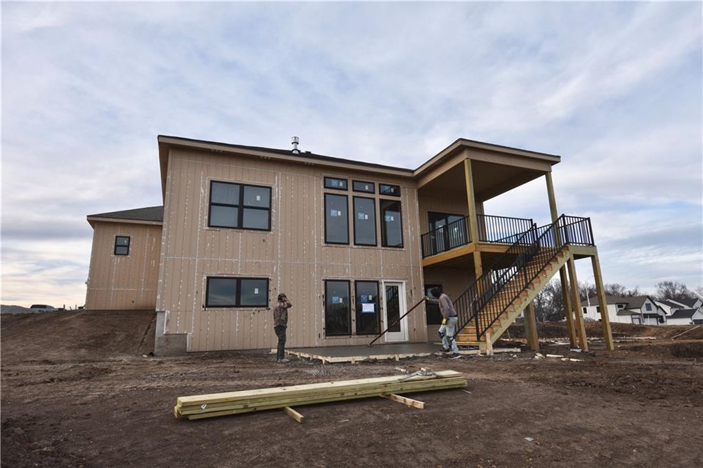The McKinley by Hearthside Homes is a stunning Reverse 1.5 Story offering 4 bedrooms, 3 baths, and over 2,800 sq ft of well-appointed living space that blends comfort, craftsmanship, and modern style. The open-concept main level features hardwood floors, abundant natural light, and a great room anchored by a sleek linear fireplace. The kitchen impresses with quartz countertops, a contrasting island and hood, and a black Silgranit sink—balancing beauty and function. The dining area opens to a covered deck overlooking the backyard. The primary suite delivers a true retreat with a freestanding tub, tiled shower, dual vanities, and a spacious walk-in closet that connects directly to the laundry room. A secondary bedroom, full bath, and laundry complete the main level. The finished walkout lower level adds a large rec room with wet bar, two bedrooms with walk-in closets, a full bath, and generous storage space. An oversized patio enhances outdoor living and is perfect for entertaining or quiet relaxation. Mid April completion date. This home is built with double-wall construction, I-joist floor systems, and engineered roof trusses for strength and durability. Every Hearthside home also includes a video-recorded sewer scope, third-party duct cleaning, and a third-party inspection process to help ensure quality and peace of mind. Hearthside Homes has been building in the Kansas City area since 1987 and is known for quality construction and a streamlined building experience. ***Hearthside includes an exceptional warranty package: 1 year of whole-house coverage, 2 years of mechanical systems protection, and a 10-year major structural warranty. Plus, a third-party inspection with sewer line review and HVAC duct cleaning.*** UPDATED PHOTOS COMING SOON! Outstanding community amenities include; swimming pool, pickle ball court, 3 acre fishable pond, outdoor pavilion area w/2 fireplaces, rentable clubhouse with kitchen & party space & internet!